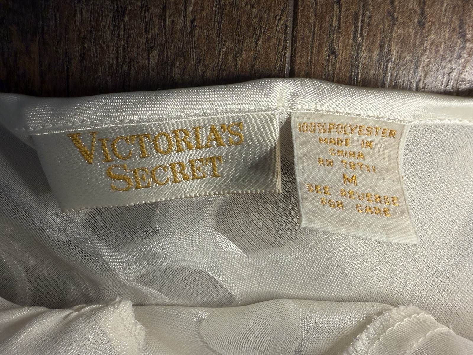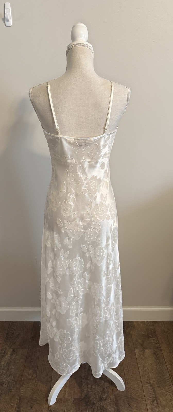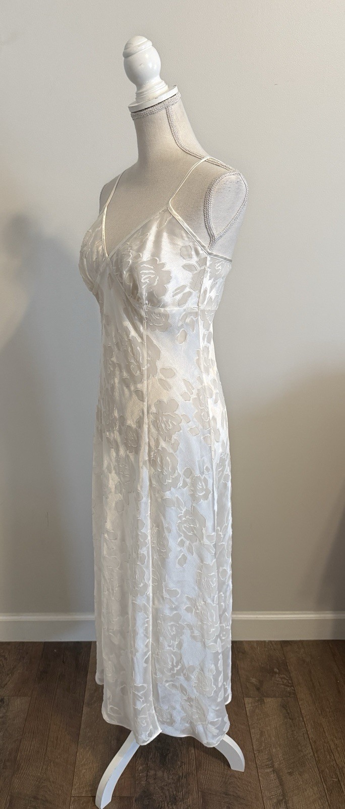 как выглядит Vintage Victoria Secret Gold Label White Sheer Slip Dress Floral Side Slit Sz M фото