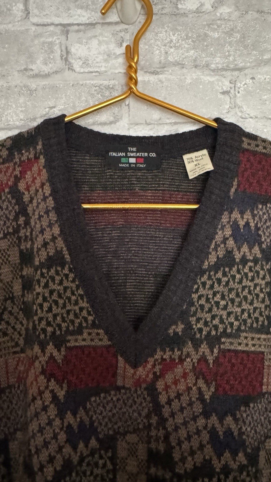 как выглядит The Italian Sweater Co Wool Blend Vest Multicolor Shape Print Mens Size XL фото