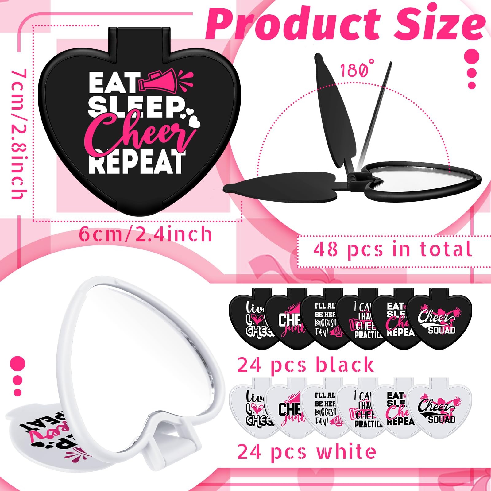 48 Pcs Cheerleader Mirror Gifts Bulk Cheerleading Compact Mirror Bulk Mini He...