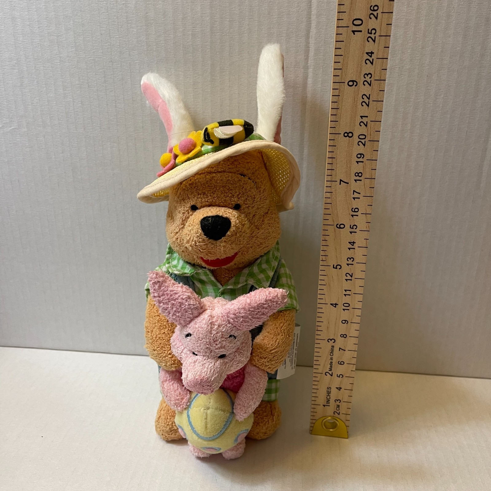 • Disney Store Winnie The Pooh Farmer 8" Plush Bunny Ears Piglet Easter Egg