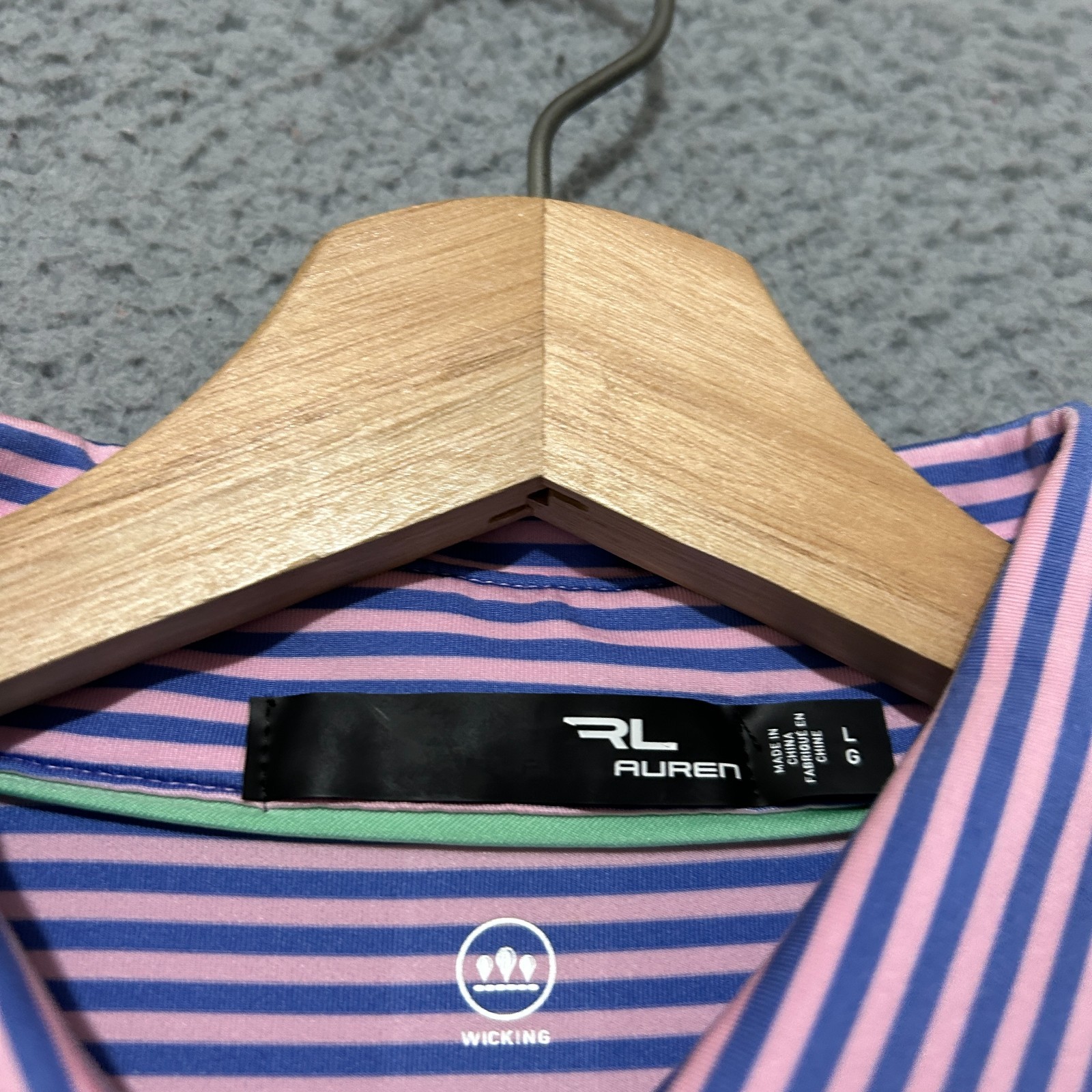 RLX Ralph Lauren Polo Shirt Men L Purple White Striped Stretch Golf Performance