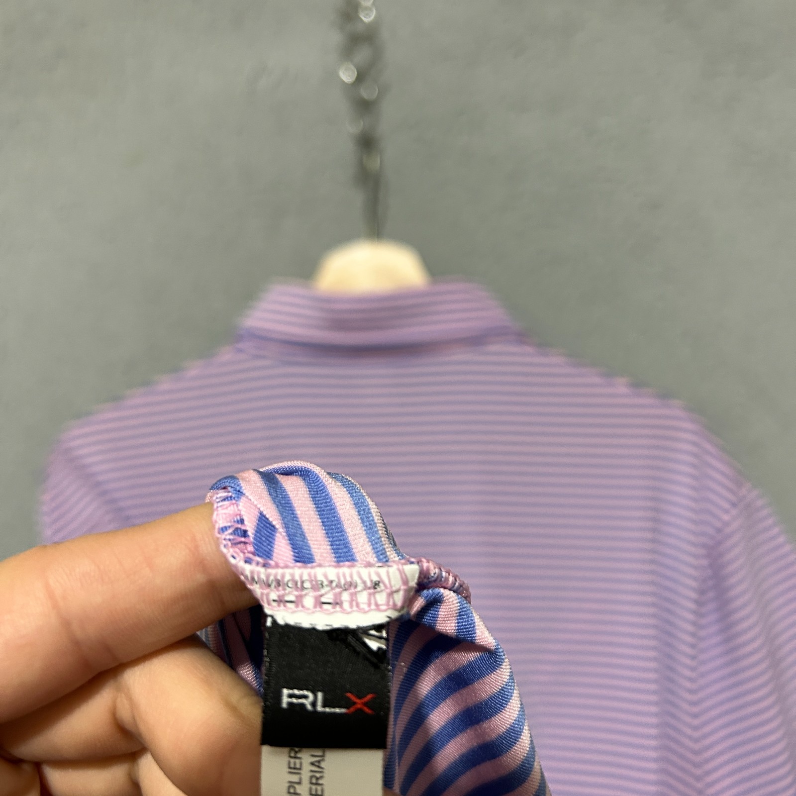 как выглядит RLX Ralph Lauren Polo Shirt Men L Purple White Striped Stretch Golf Performance фото