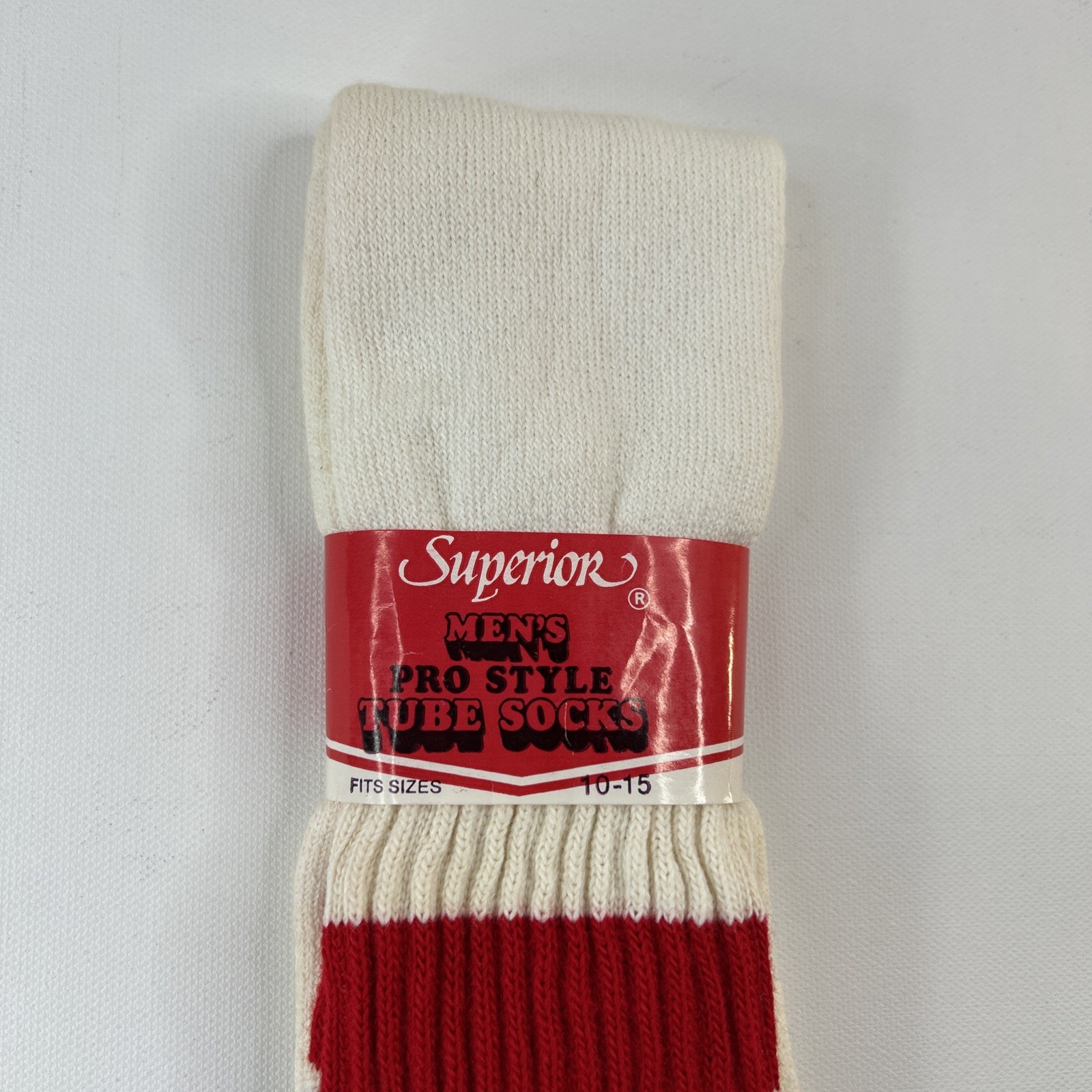 Vtg 70's White/Royal/Red Tube Socks 10-15 NOS Acrylic Nylon Blend 1980's Sports