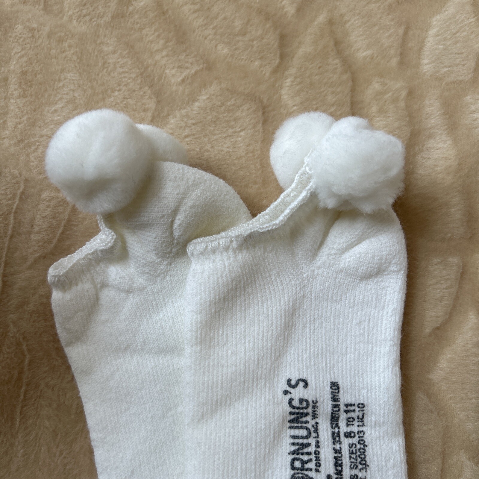 VTG Horung s Women's Socks White 80's Pom Pom Acrylic Blend Sz 8-11 USA Made