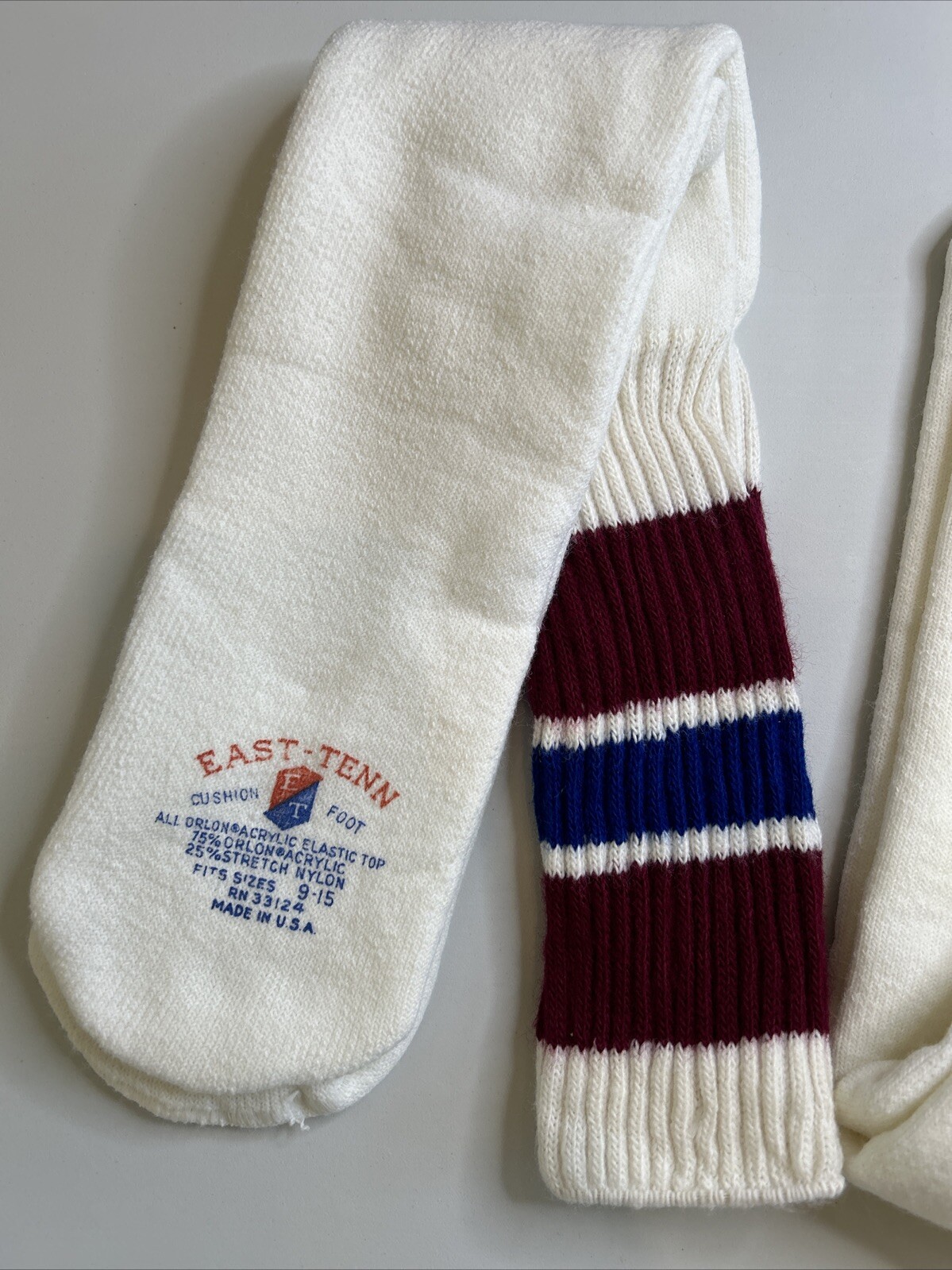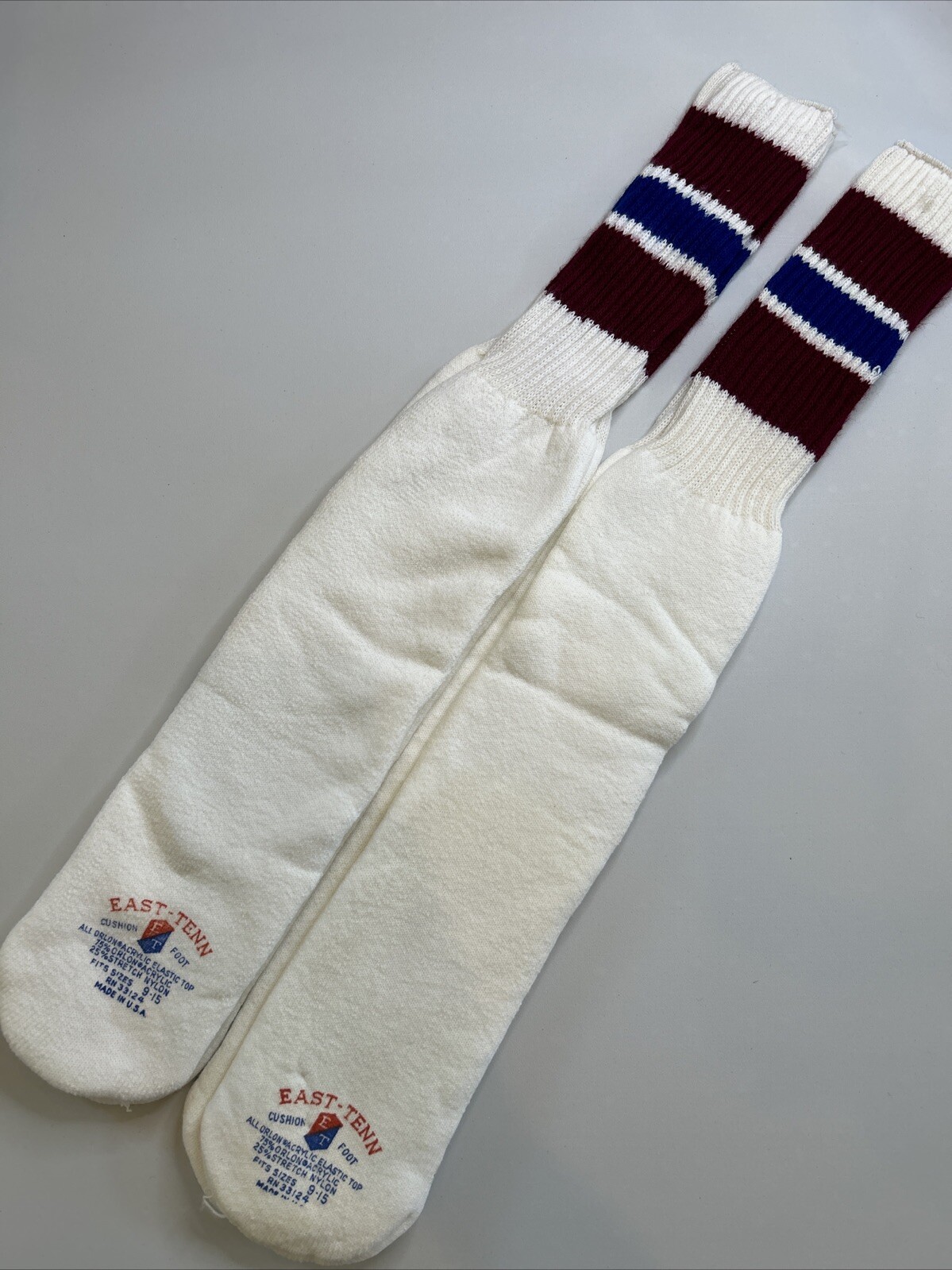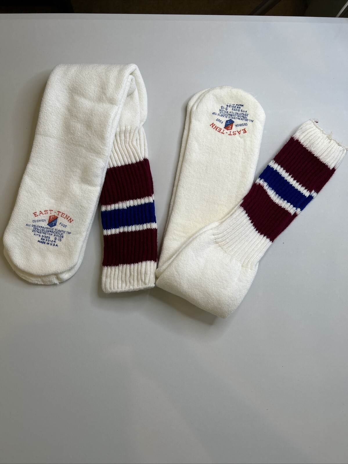 1 VTG 80's Tube Socks East Tenn Acrylic 9-15 USA Made Striped Multicolor 90's