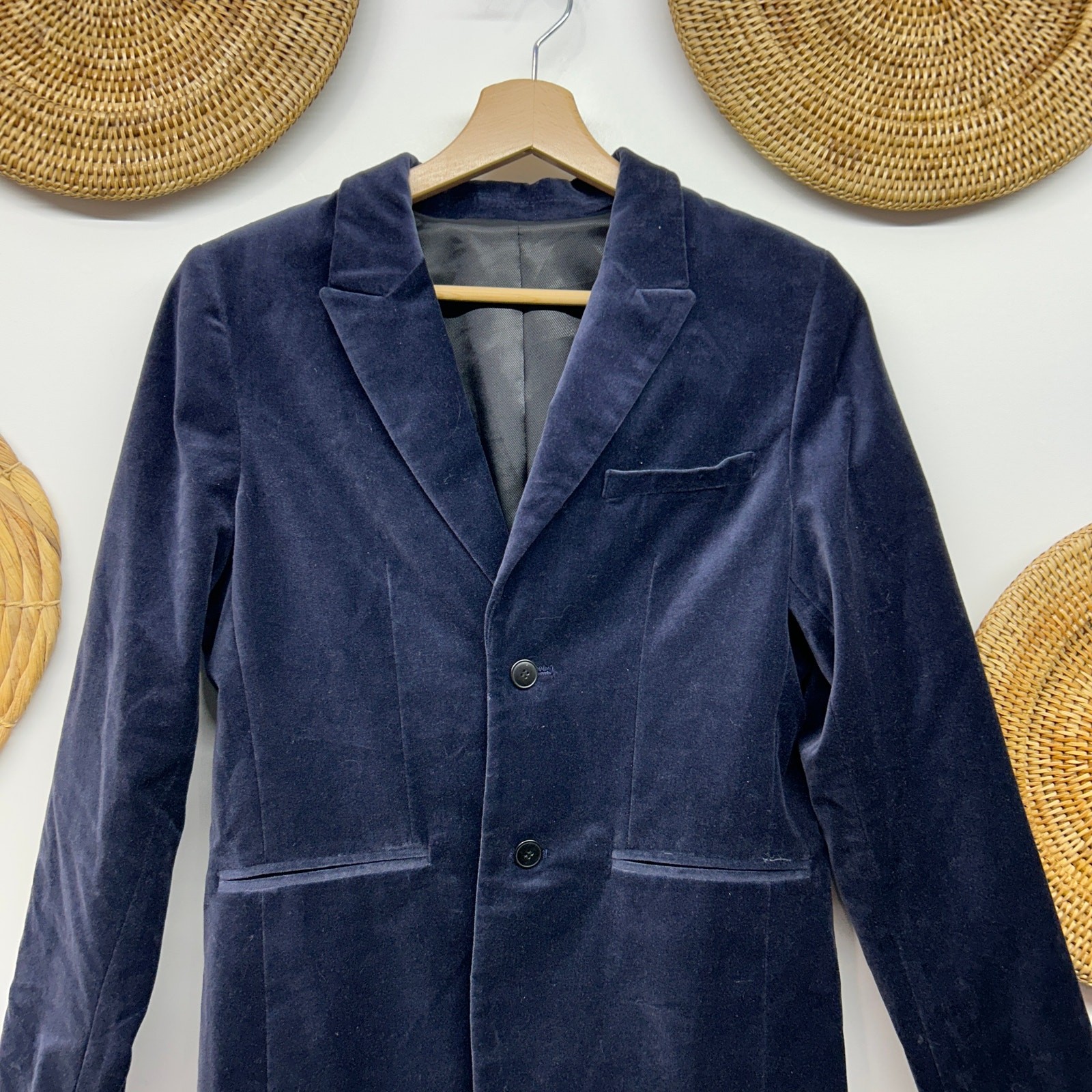 как выглядит Zara Kids Navy Blue Velvet Blazer Suit Jacket Boys 13/14 фото