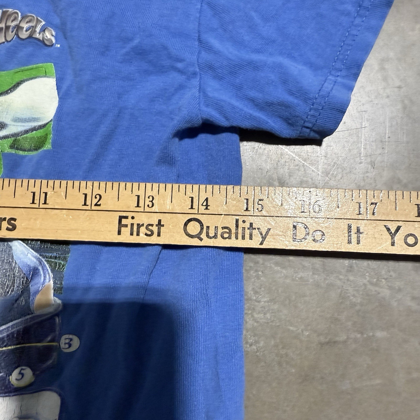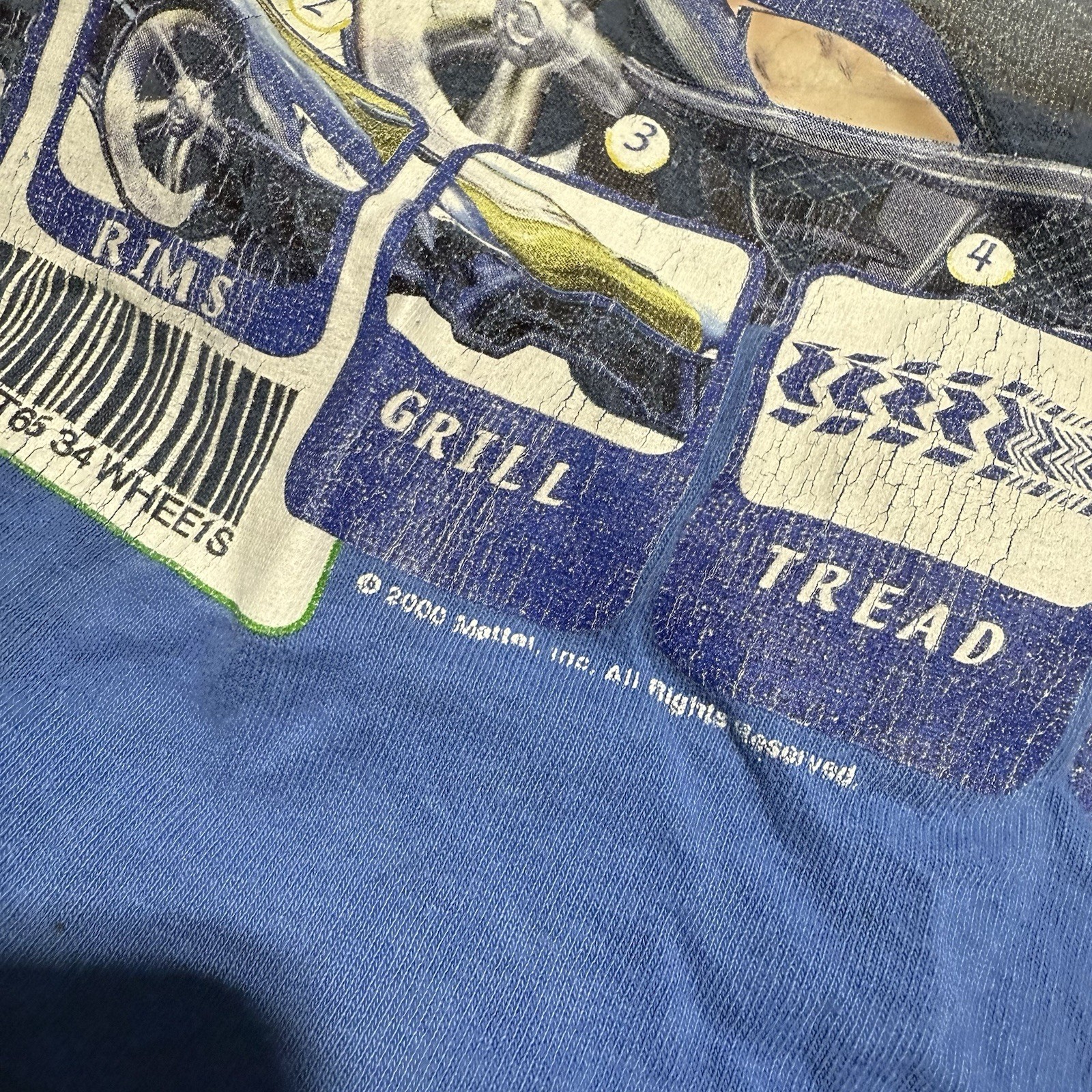 Vintage 2000 Hot Wheels Graphic T Shirt Mattel Racing Car Logo Blue Kids Large