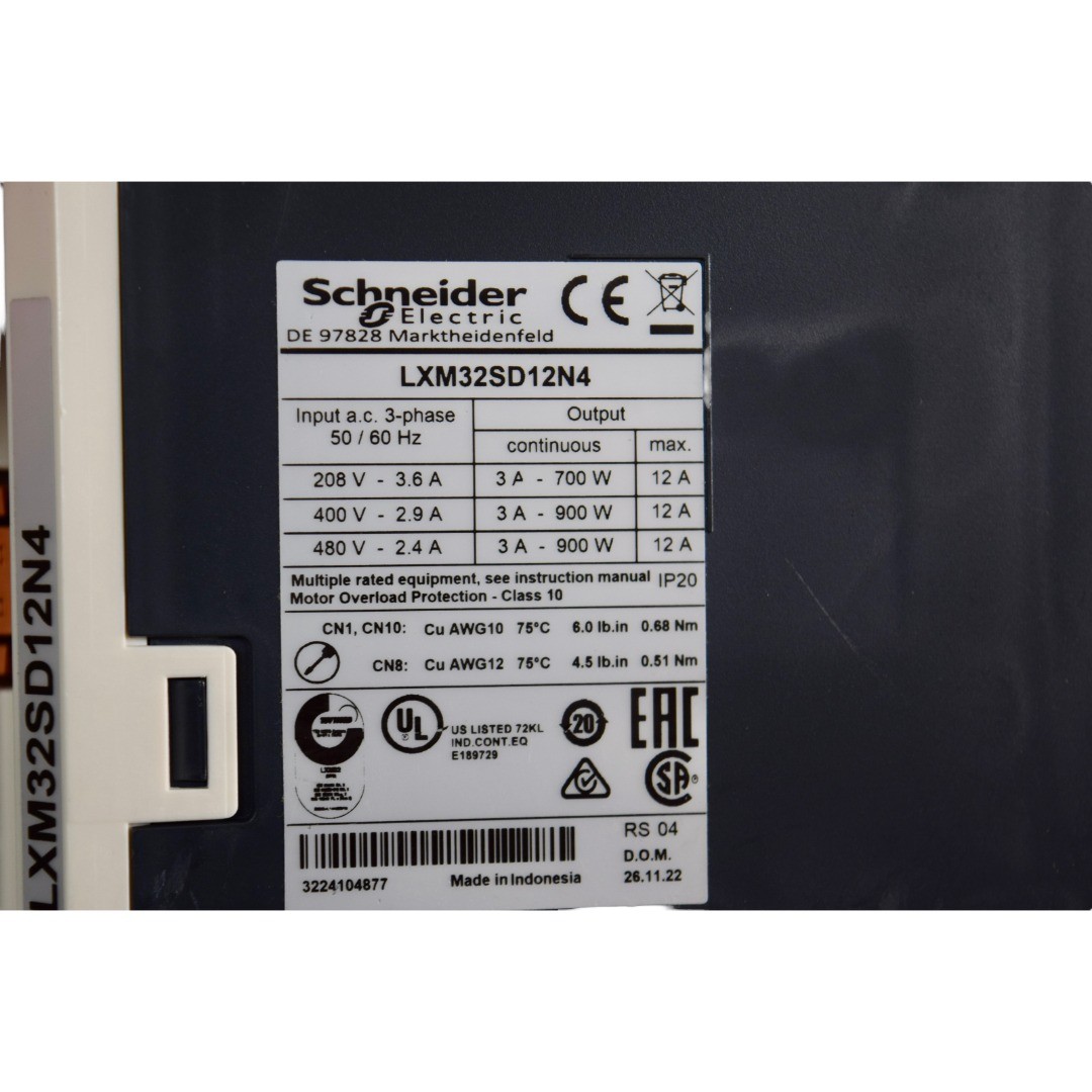 Schneider Electric LXM32SD12N4 Lexium 32 Servo Drive 3A 208/480V 3-Phase