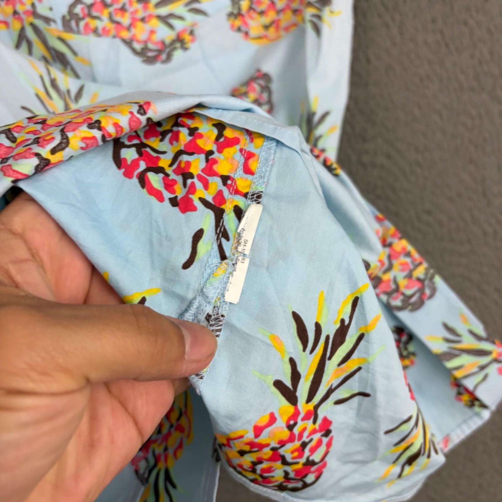 RIP CURL Shirt Mens XL Blue Pineapple All Over Print Hawaiian Beach Casual Dad