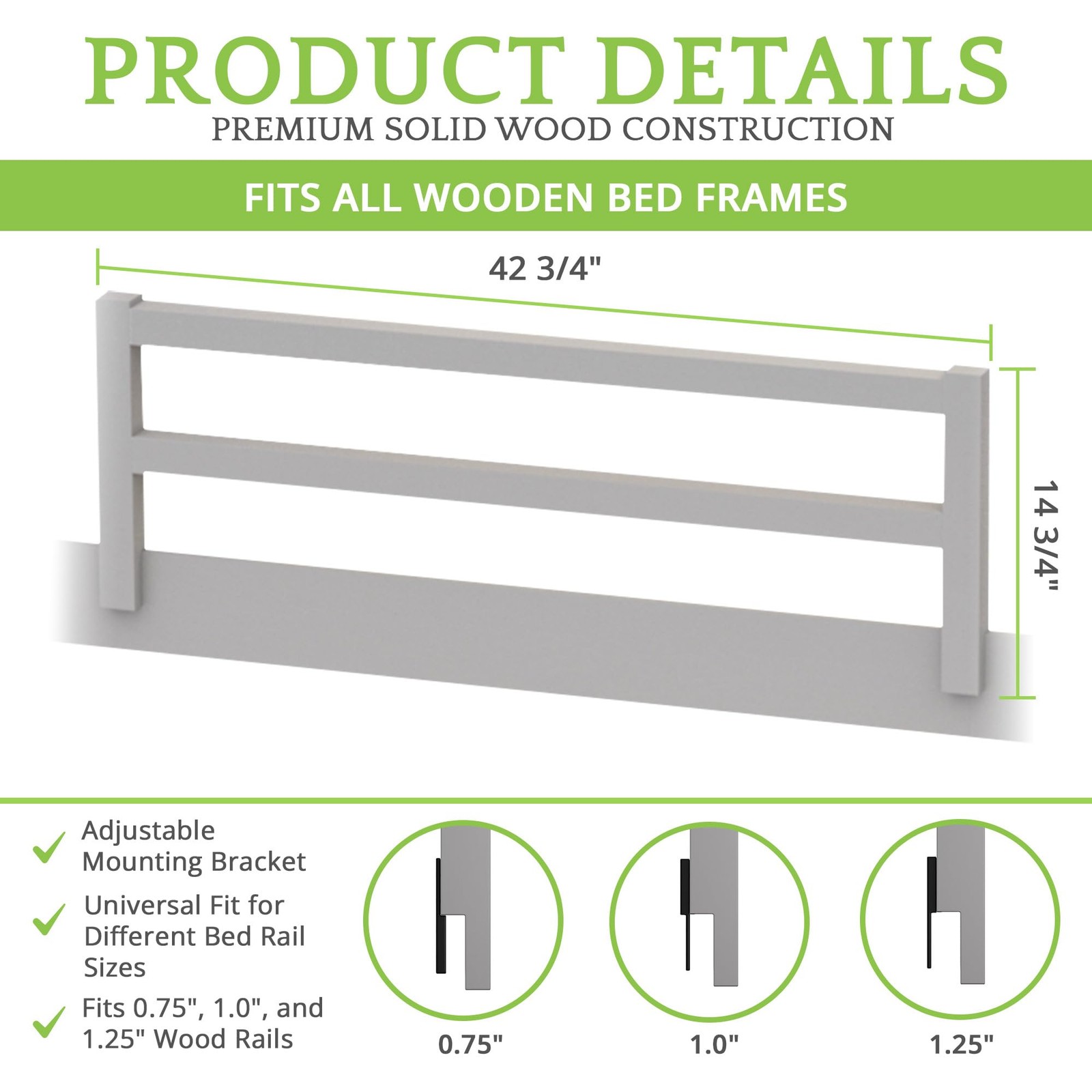 Safety Guard Rail for Baby, Kids, and Children - Solid Wood Safety Bed Rail f...