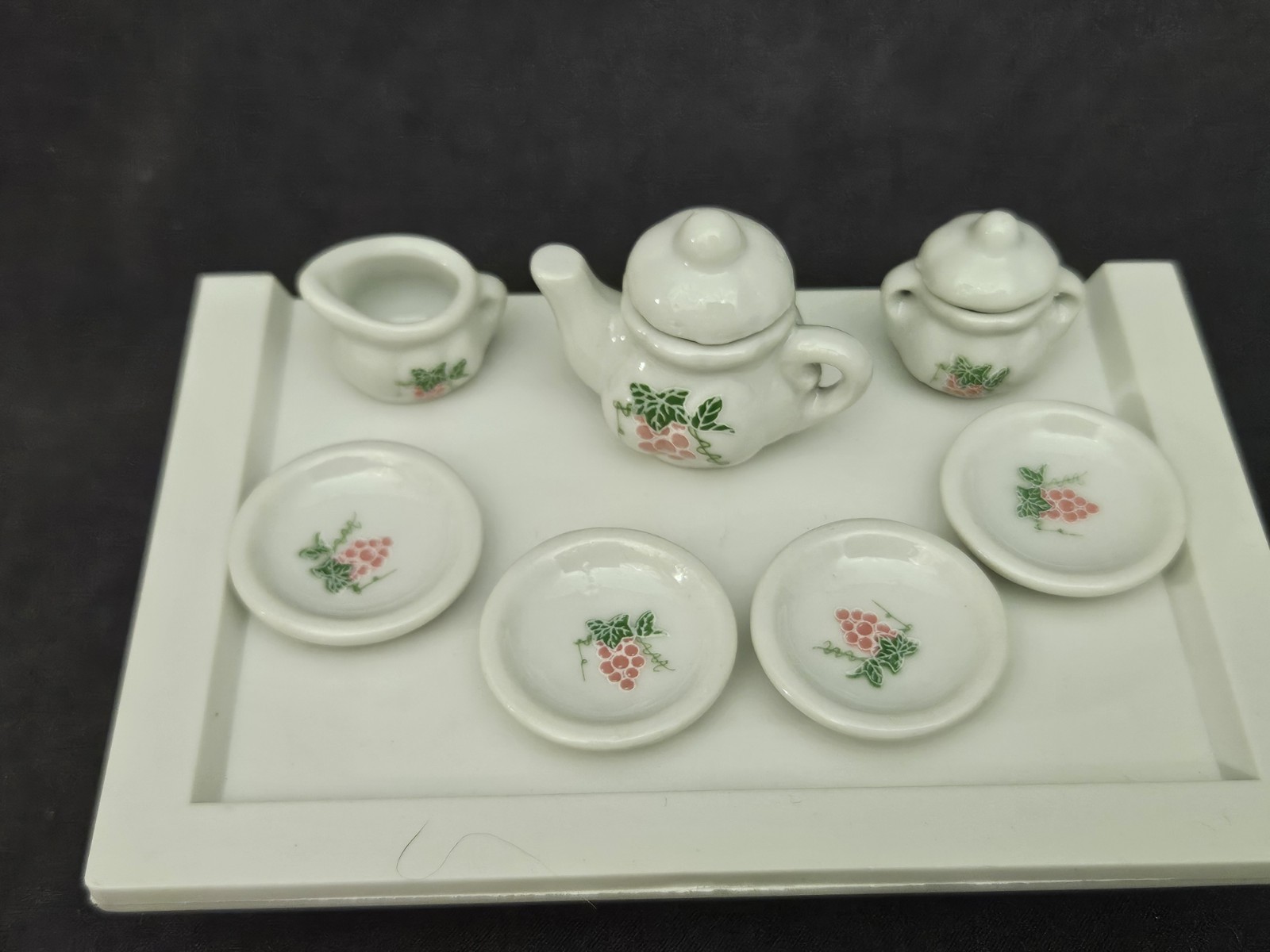 Vintage Mini Porcelain Tea Set 13pc Grapes Doll House Dishes Cups Plates Pot