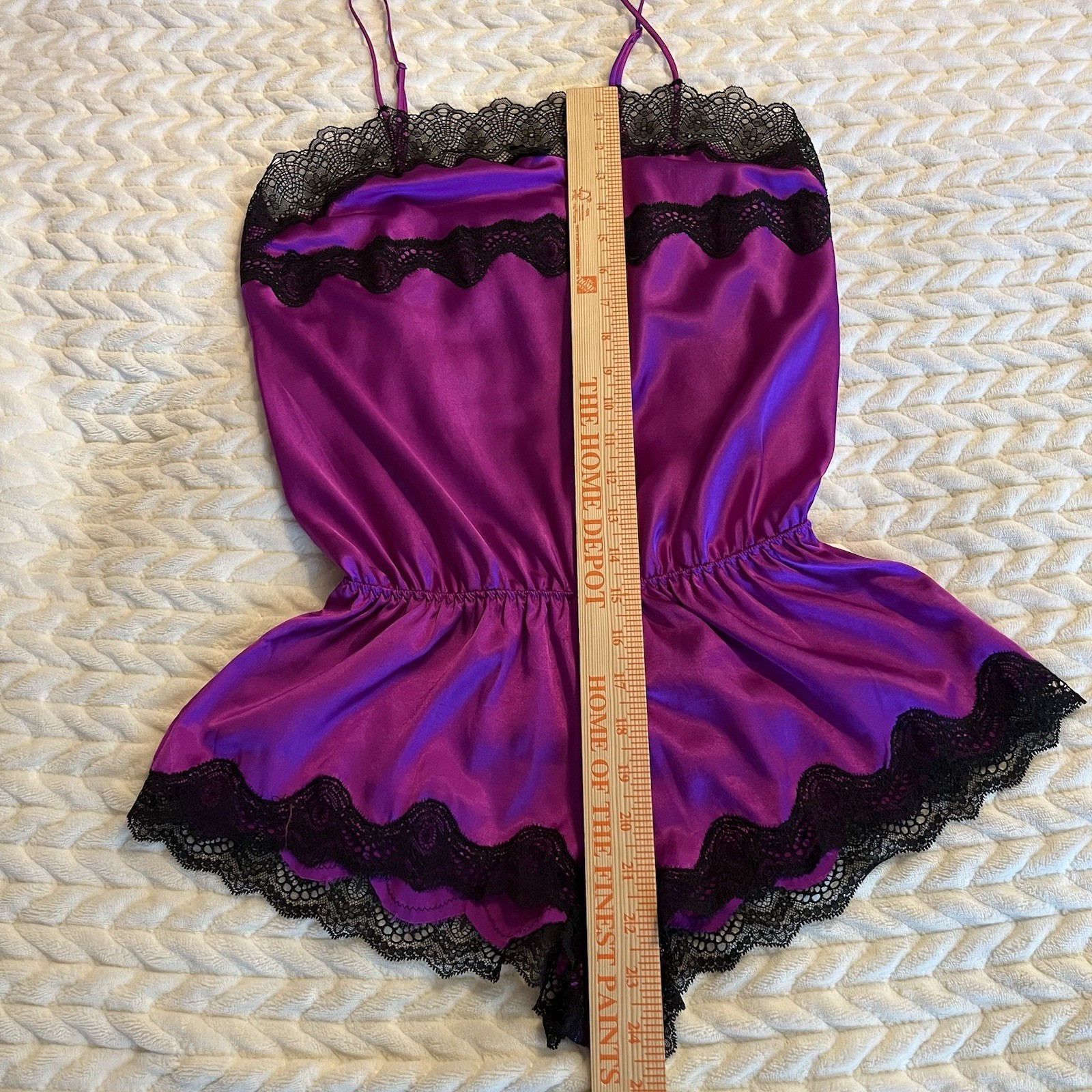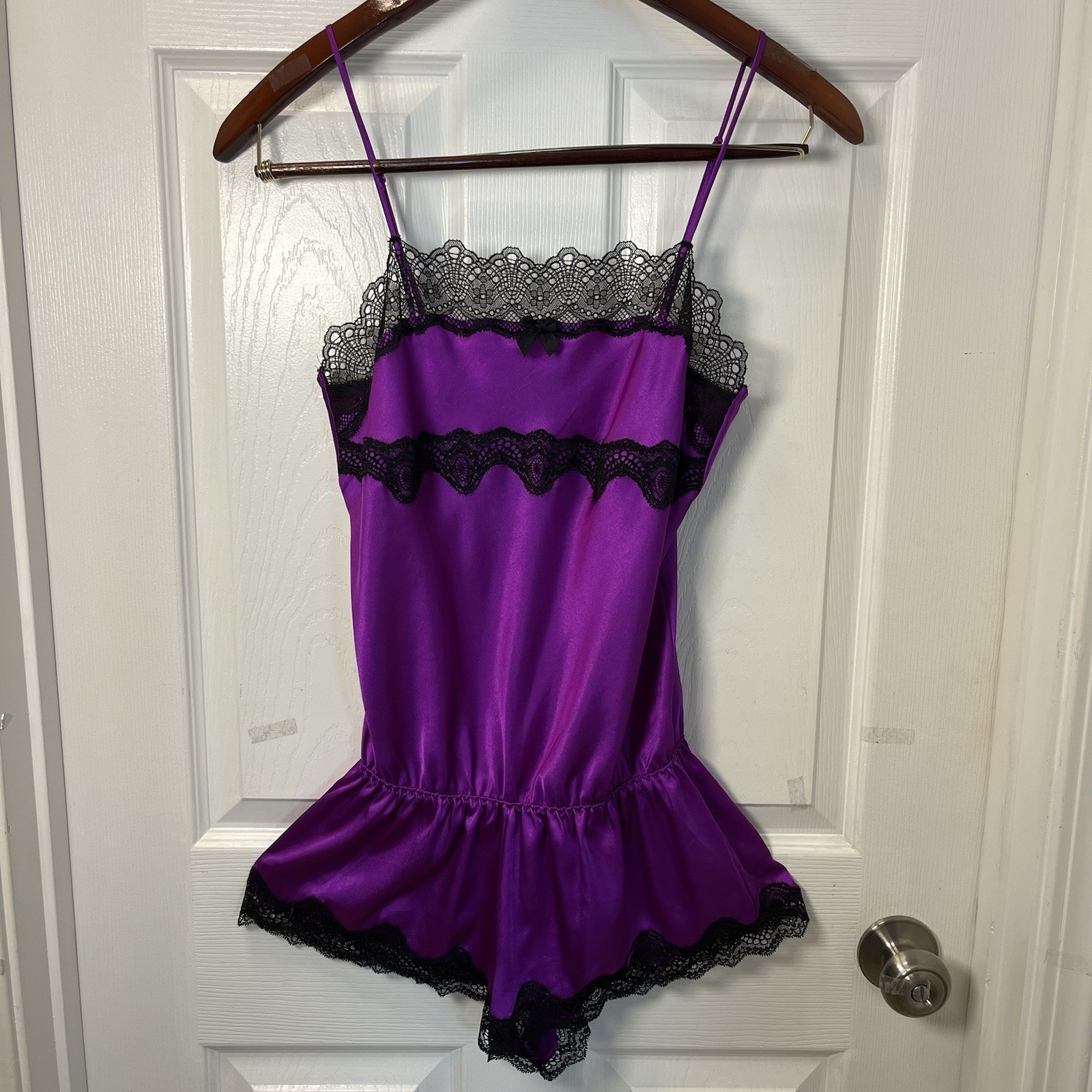 Victoria s Secret Purple Satin Lace Romper Teddy Size SMALL Lingerie, Flirty