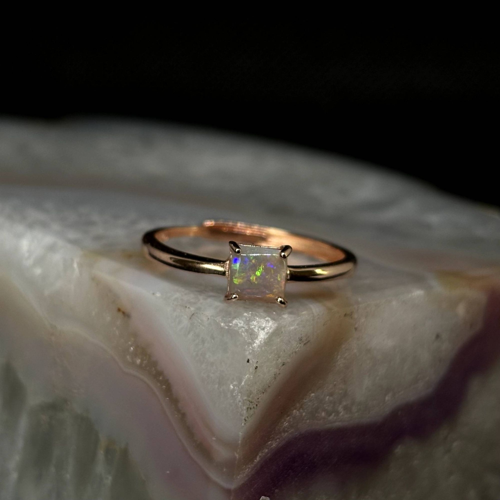 Color Stained Square Cut Australian Opal Floral Collectors Ring