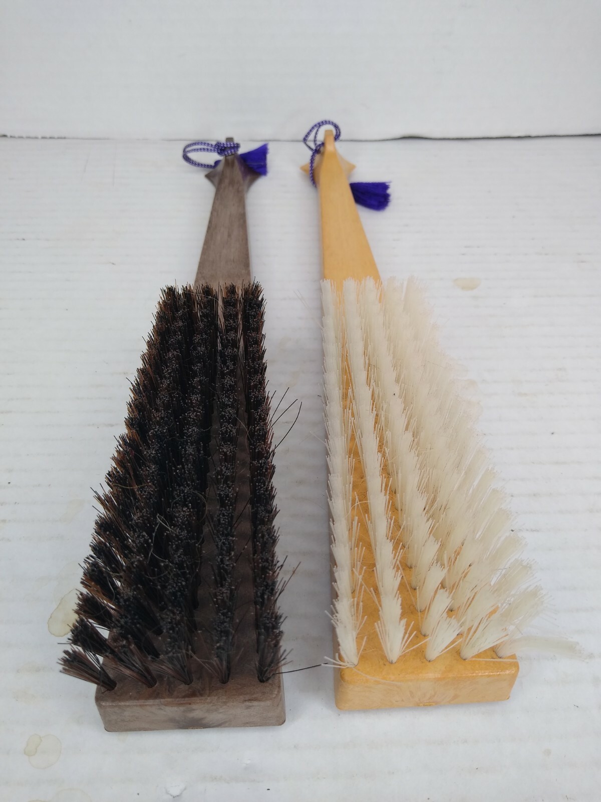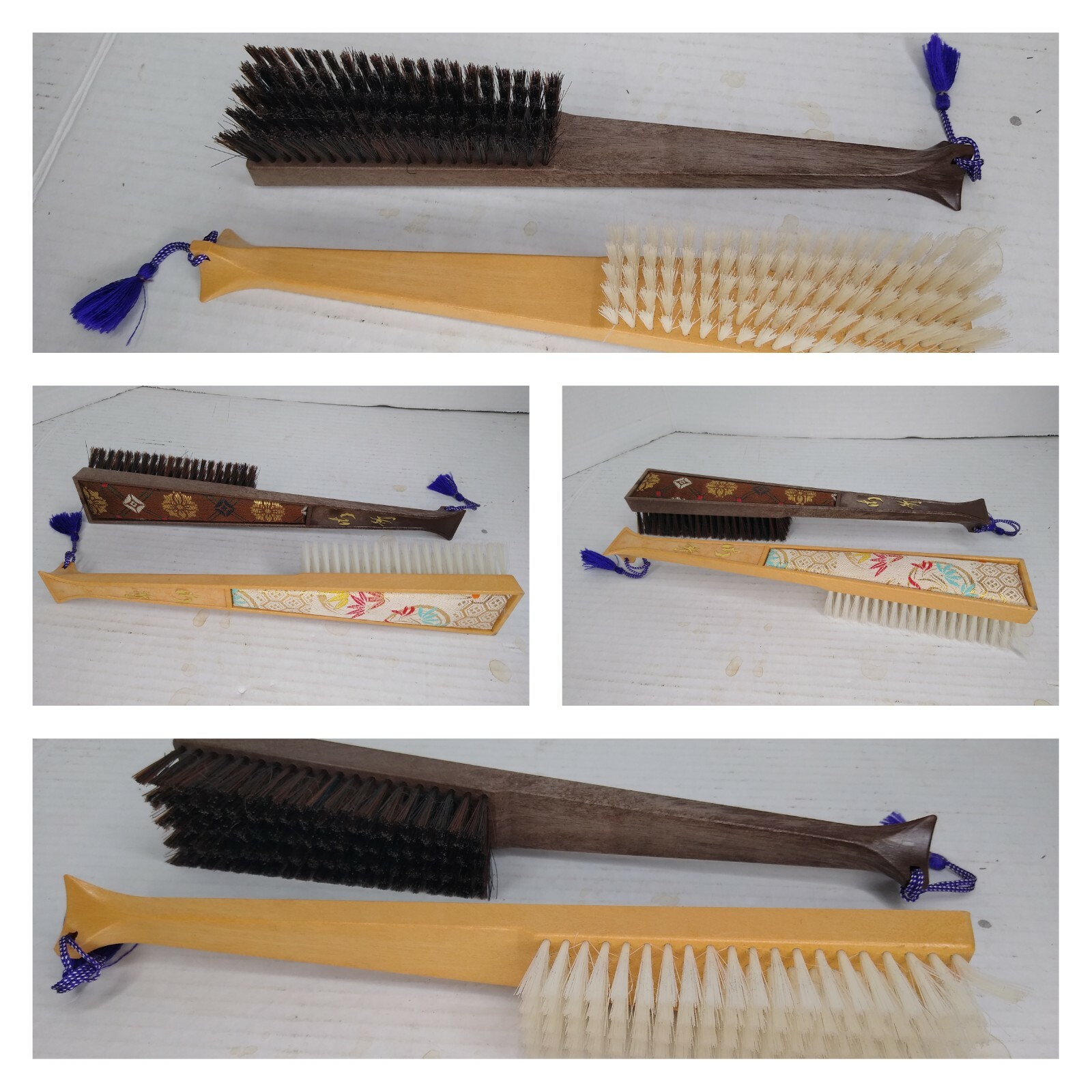 как выглядит Vintage 2 Piece Set Chinese Clothing Brushes In Original Box With Blue Tassels. фото