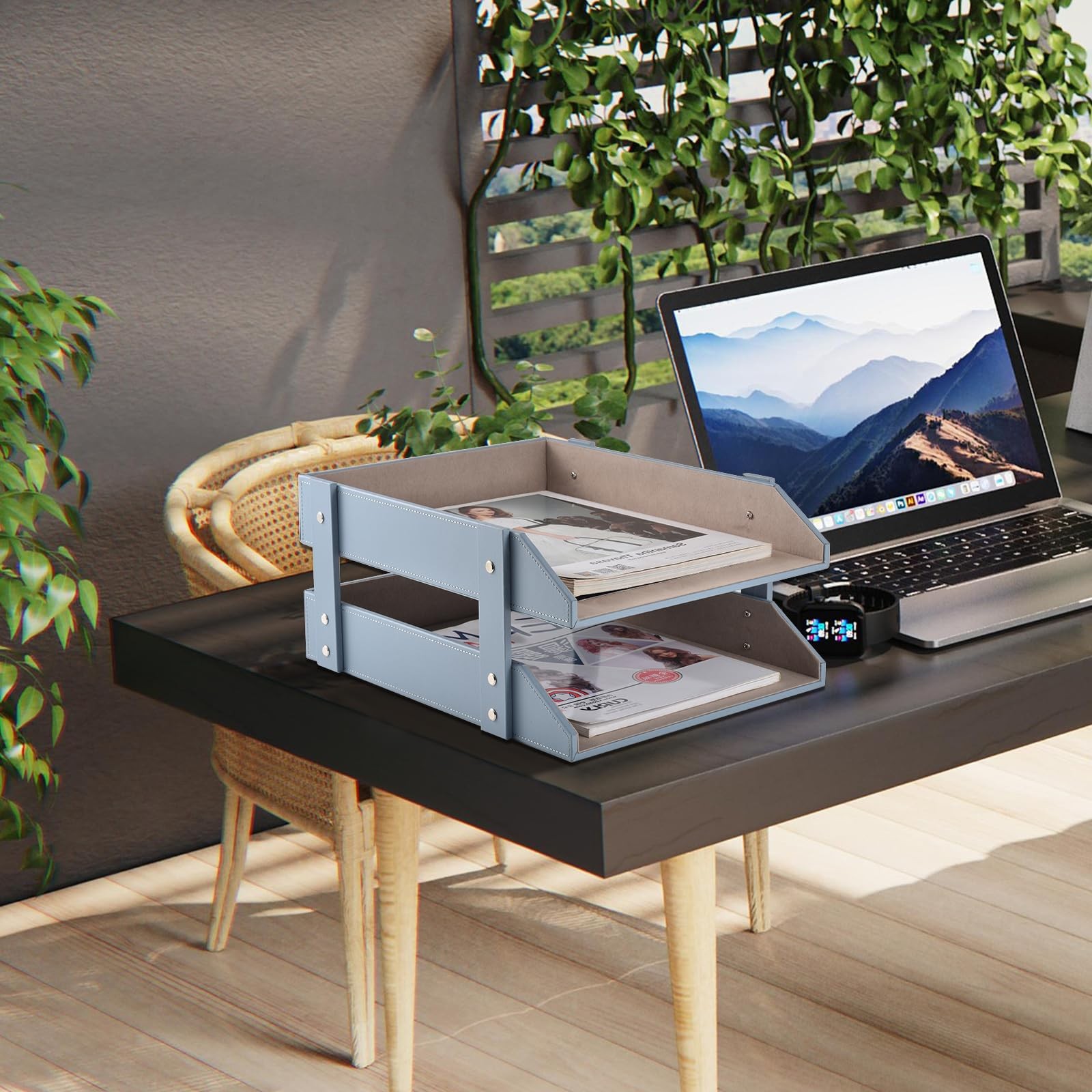 как выглядит Leather Desk Letter Tray 2-Tier A4 Paper Organizer Office File Holder Storage фото