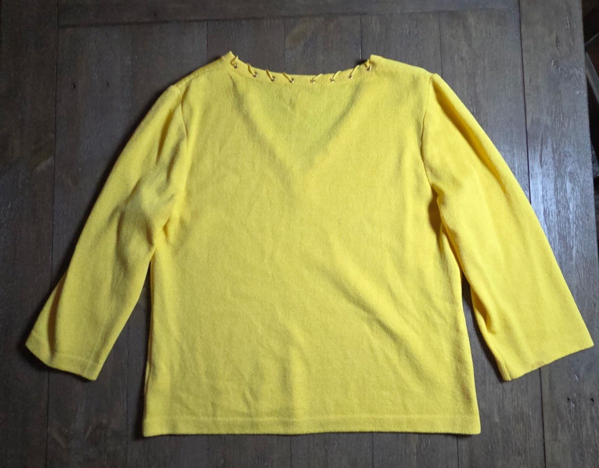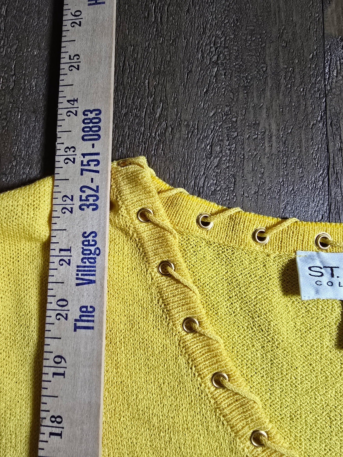 как выглядит St John Collection Yellow V-Neck Lace Up Knit Sweater Top Womens Size M фото