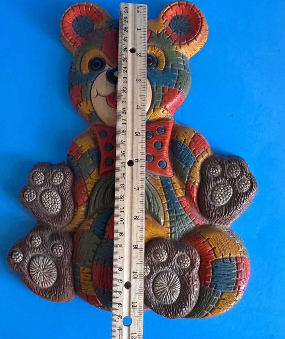 Vintage Patchwork Teddy Bear Plaque Wall Hanging Quilted Design Foam Craft 1979