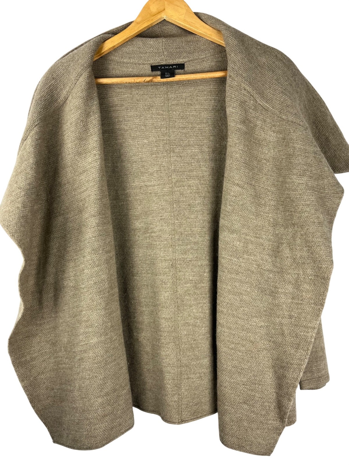 Tahari Extrafine Merino Wool Blend Open Front Cardigan Sweater tan charcoal Size