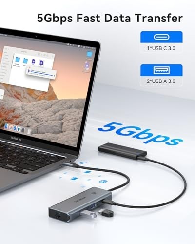 8-in-1 USB C Hub for MacBook Pro/Air, HDMI, 3 USB Ports, Ethernet, SD/TF Reader