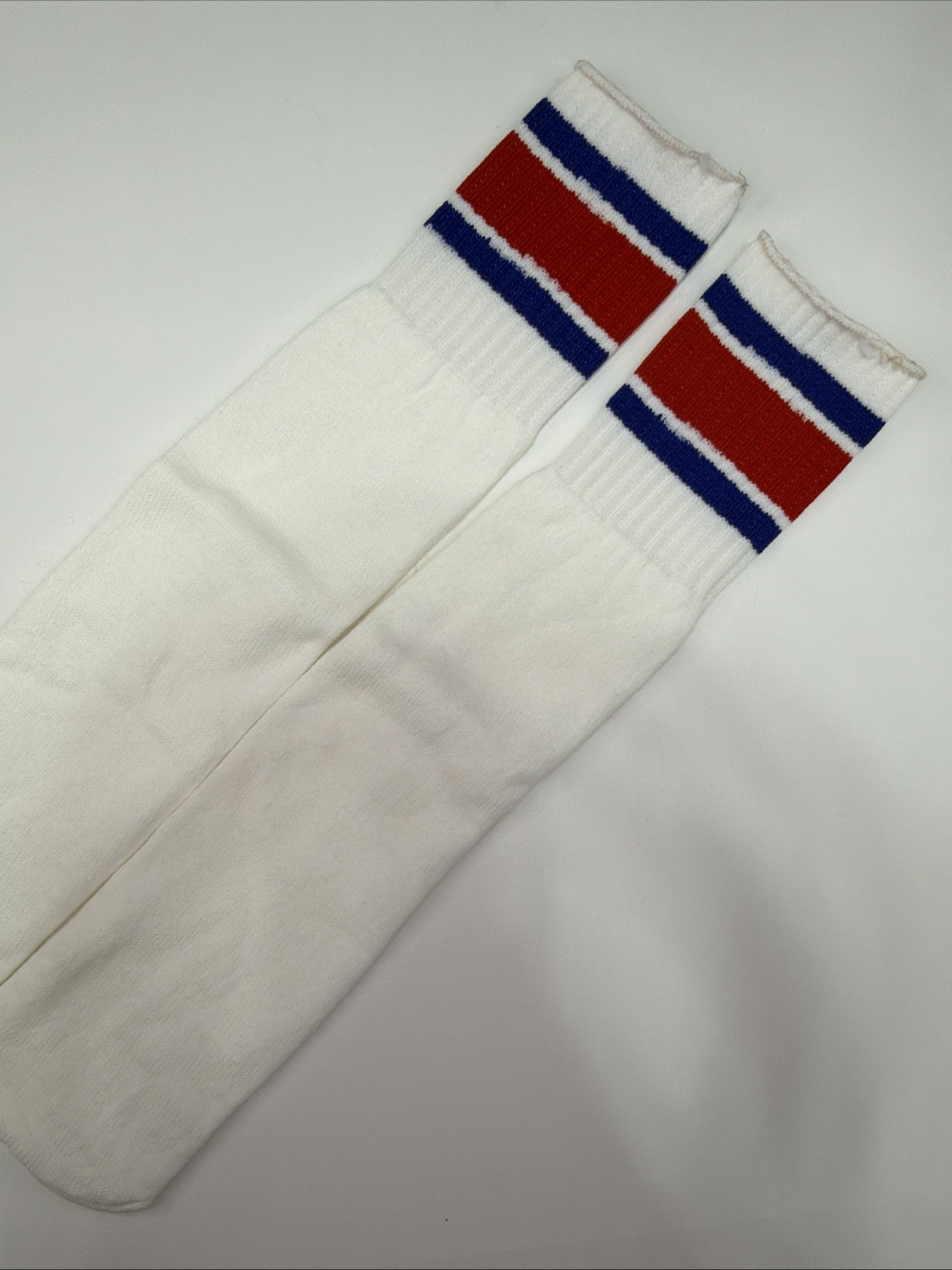 VTG Socks 90s NOS 18 Football Striped Red Royal Tube Soccer Acrylic USA 80s