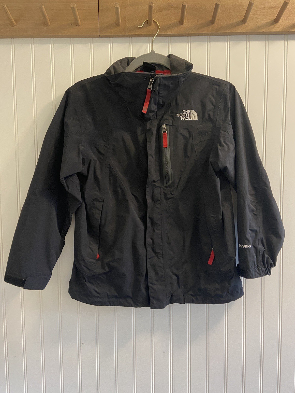 The North Face Hyvent Nylon Shell Jacket Black Red Kids M 10/12