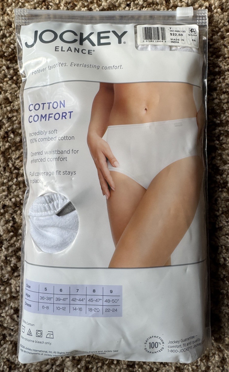 3 JOCKEY Elance 100 Combed Cotton White Hipster Panties Size 7/L NEW