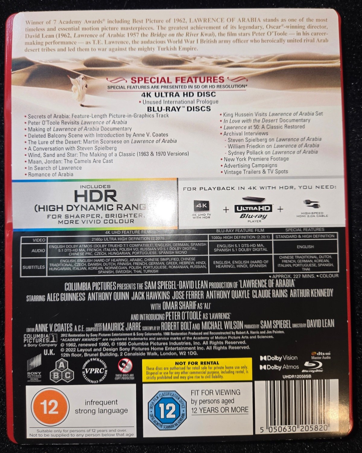 Lawrence of Arabia 4K UHD Blu-ray Limited Edition Steelbook UK Import