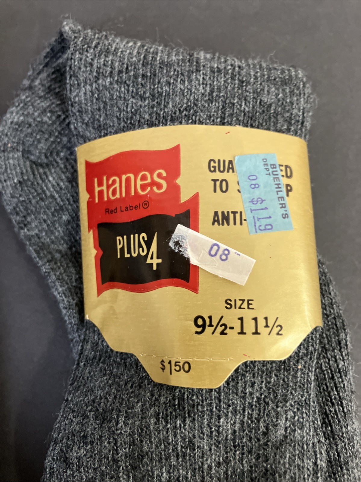 как выглядит Vintage Hanes Socks 2 Pairs Red Label Black Gray New Tags NOS Size 9.5-11.5 фото