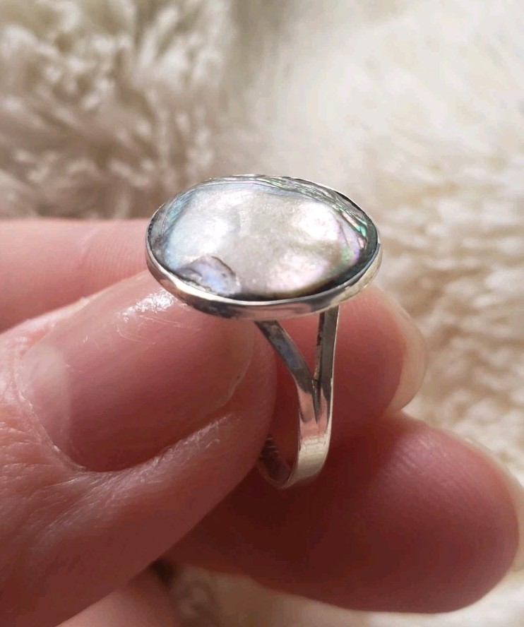 как выглядит Vintage Alpaca Silver MEXICO TAXCO Abalone Shell Statement Ring Size 5.5 фото