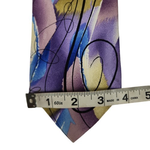 как выглядит J. Garcia Collection Fifty-Three Purple Yellow Blue "Nude" 100 Silk Tie-Long фото