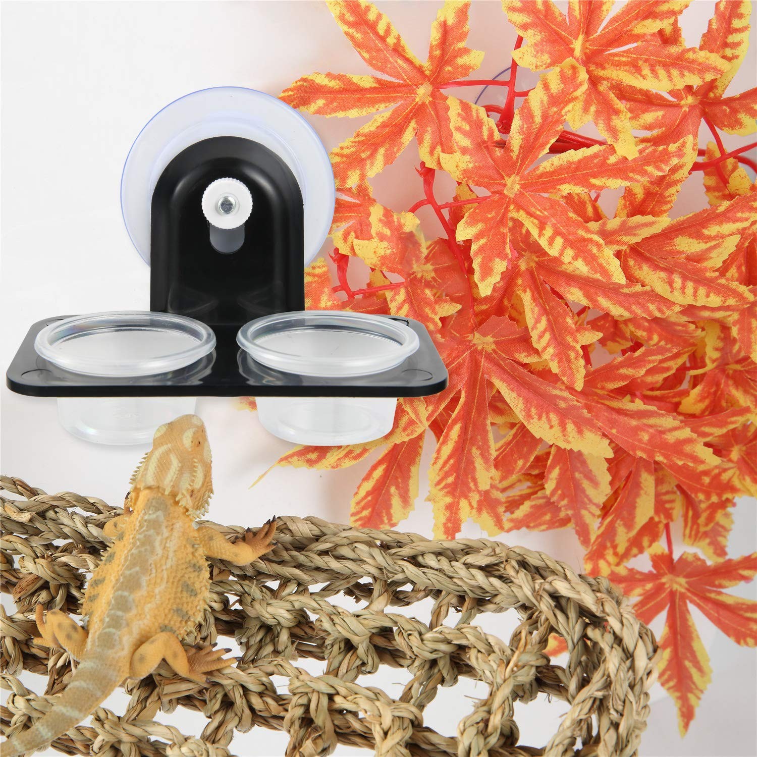 Acrylic Gecko Feeder Ledge with Suction Cups and 20 Plastic Bowls for Reptiles