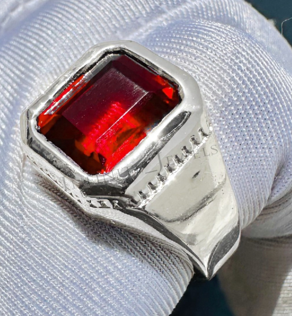 Men's Natural Red Garnet Gemstone Handmade Ring With 925 Sterling Silver Ring