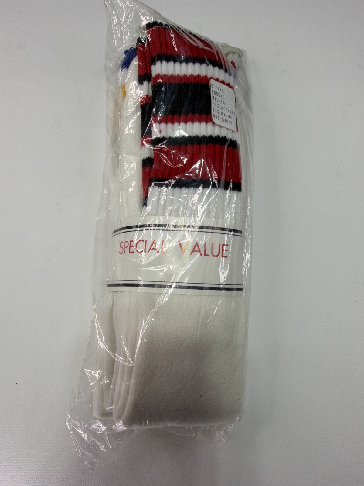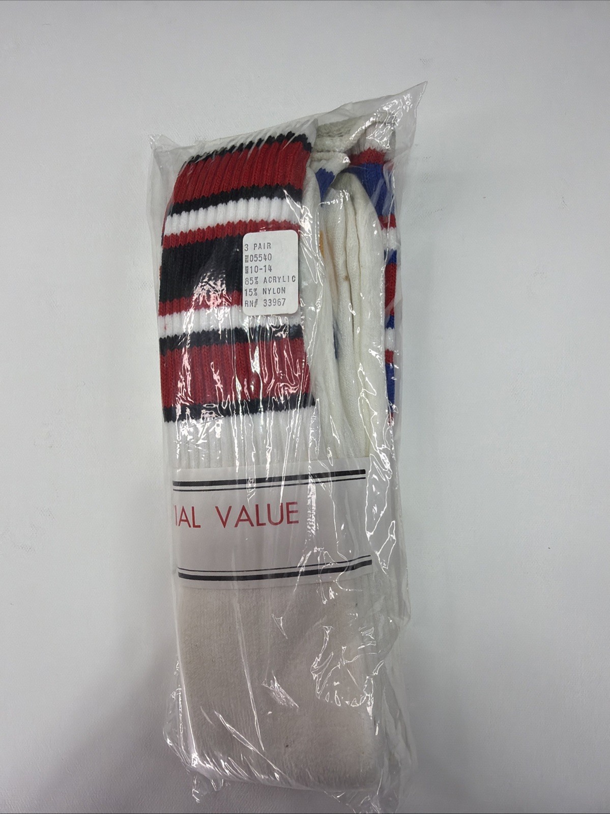 Special 3 Pack VTG Tube Socks White 10-14 NOS Pairs Acrylic 80s 90s 22 USA