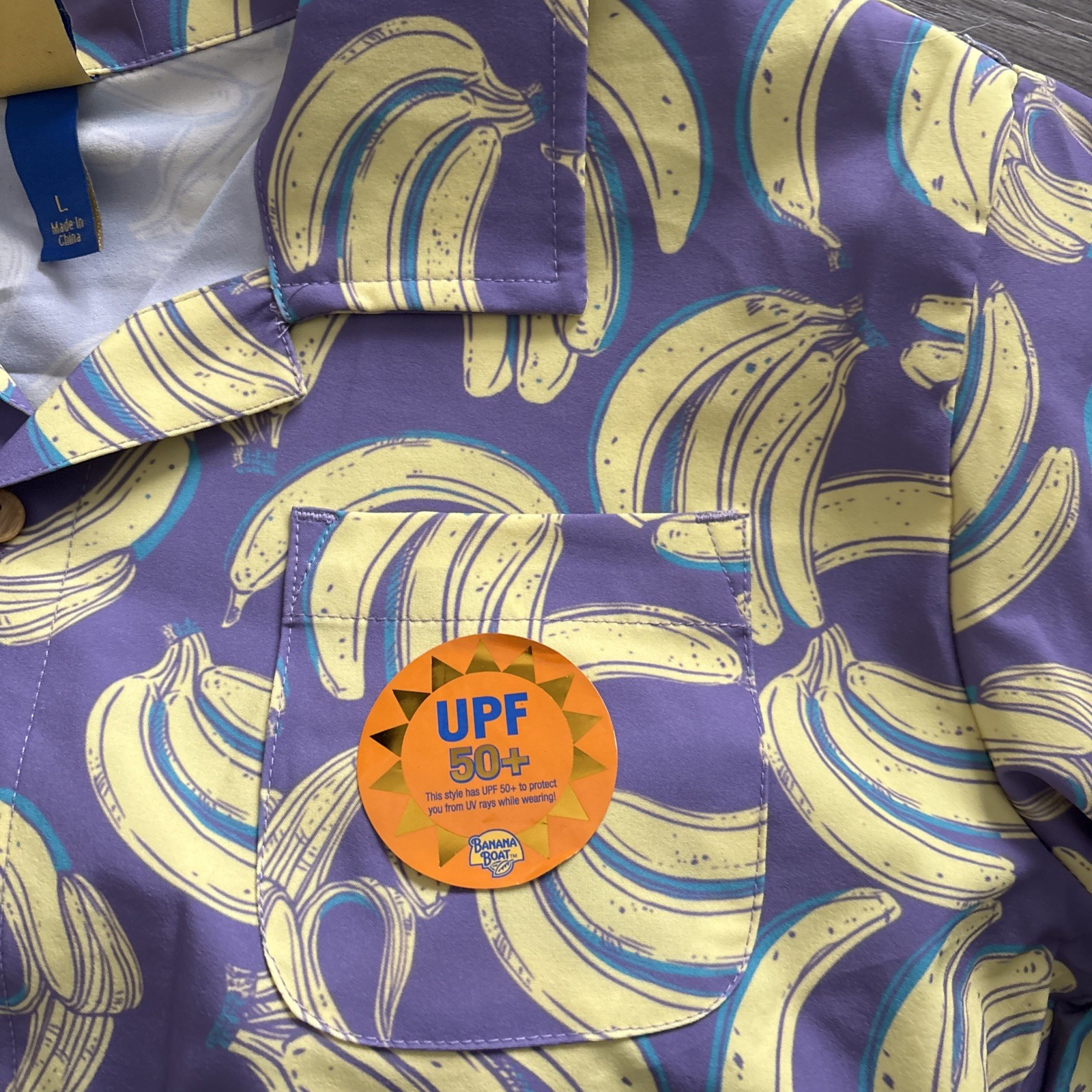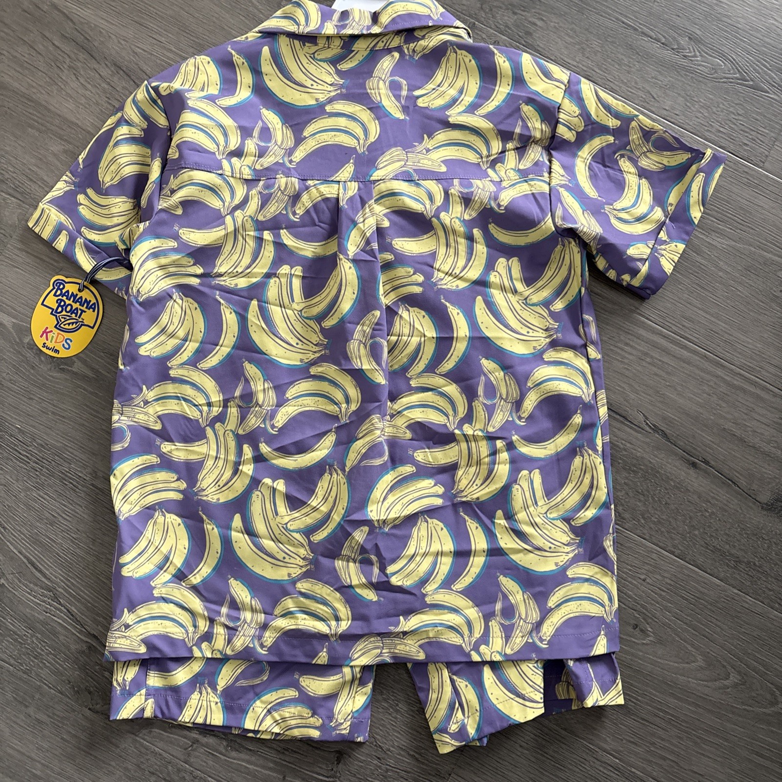 Banana Boat Kids Swimsuit 2 Piece UPF 50 shirt and shorts set purple bananas