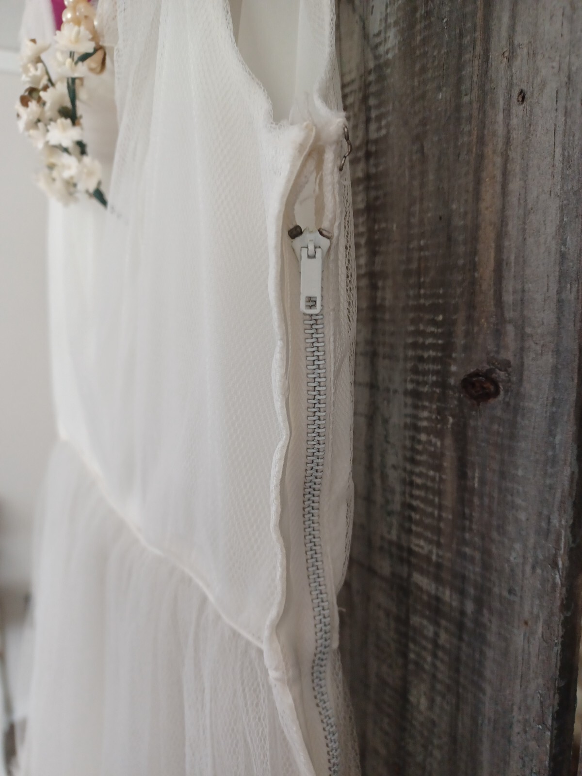 Vintage 50s Wedding Dress Flower Girl Tulle Satin Sleeveless GIRL Sz 7