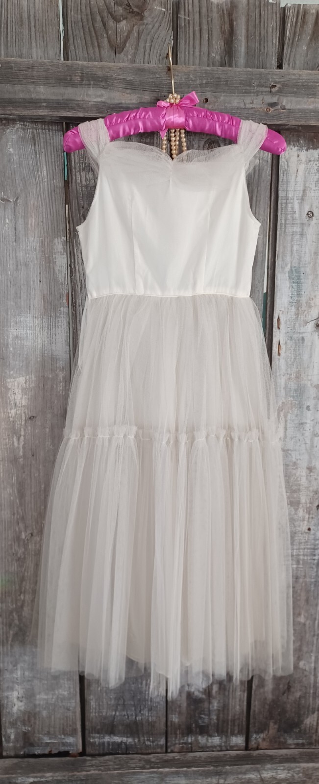 как выглядит Vintage 50s Wedding Dress Flower Girl Tulle Satin Sleeveless GIRL Sz 7 фото