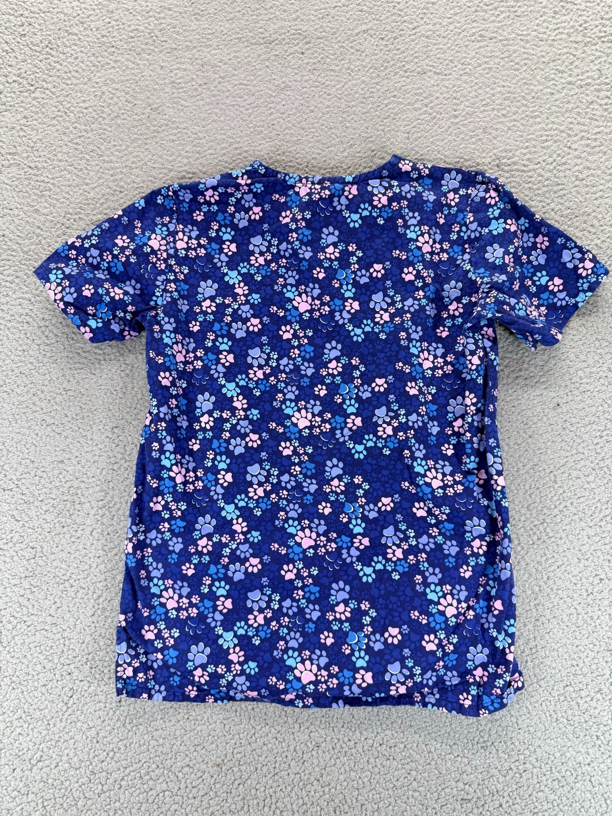 VAC Veterinary Apparel Scrub Top Womens XS Blue Pink Paw Print Cotton V-Neck