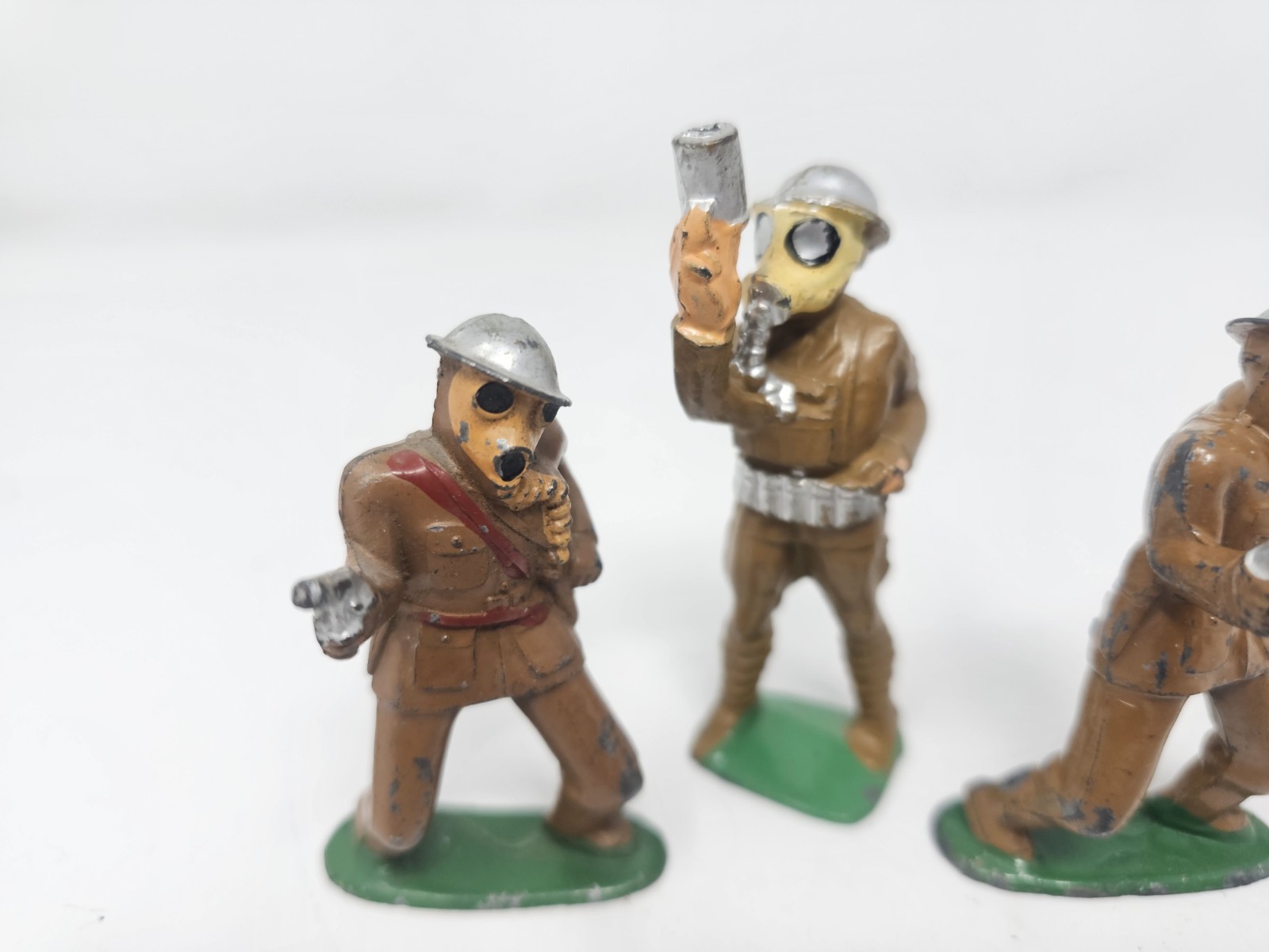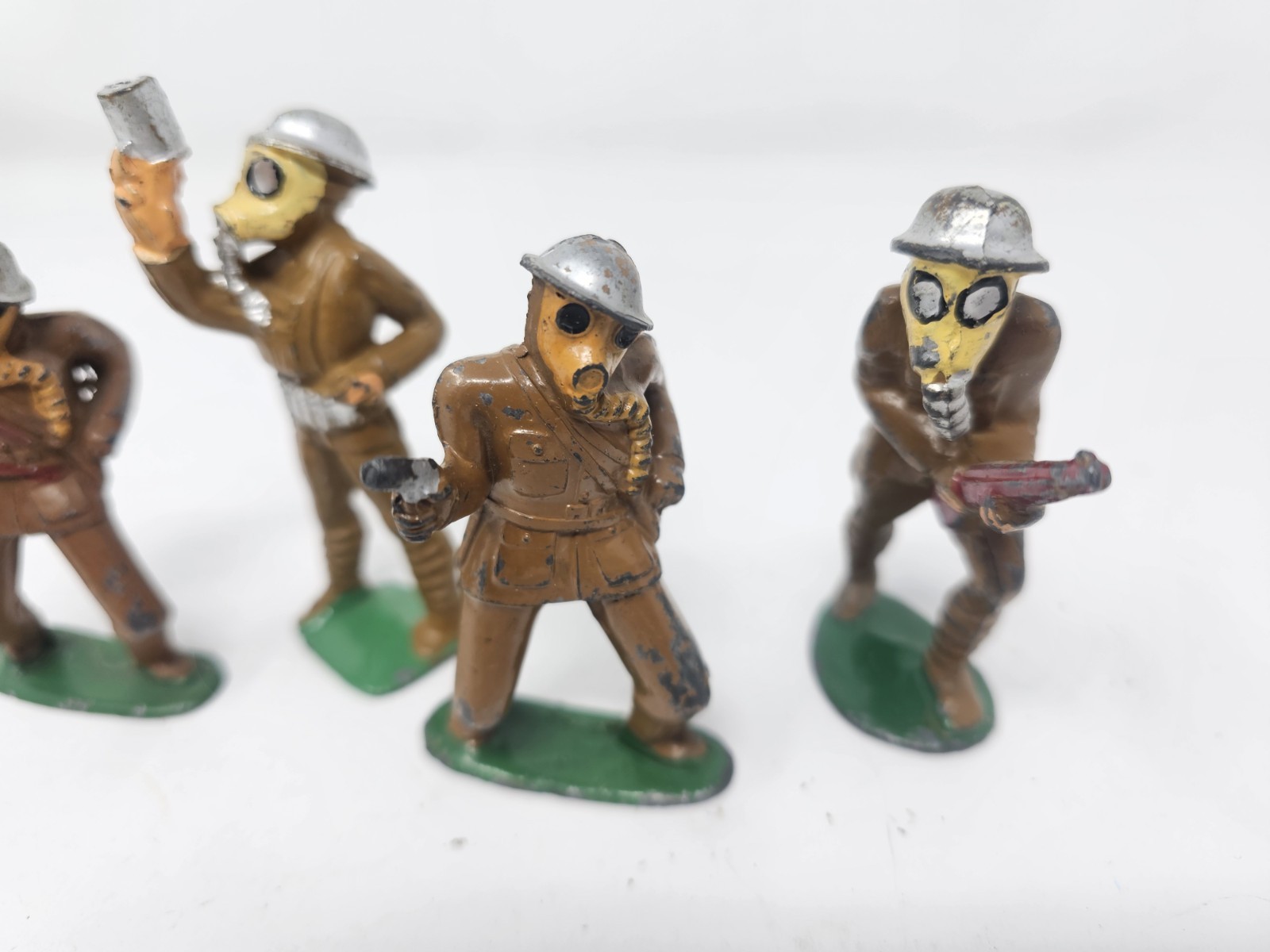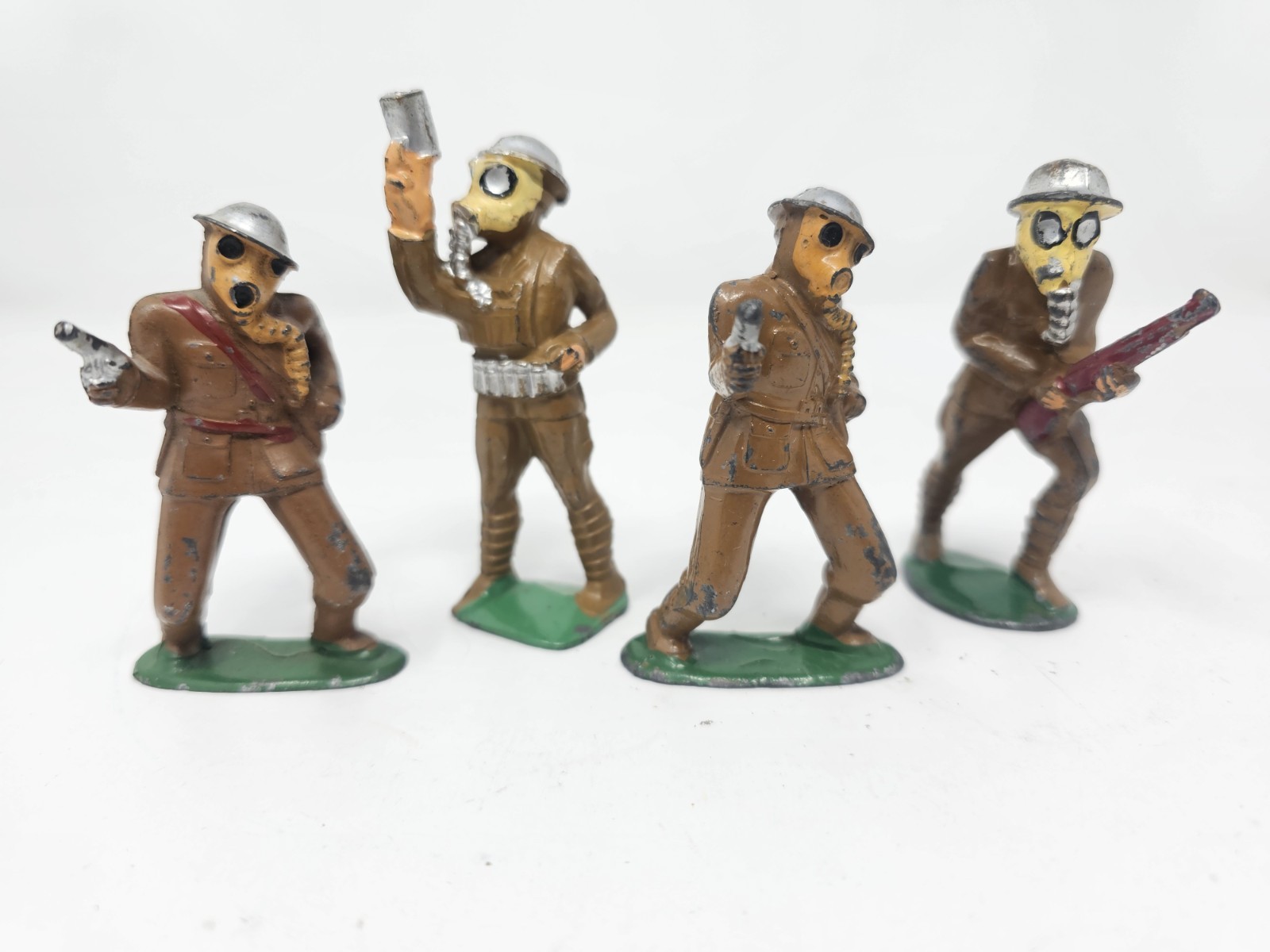 Vintage 1930's Barclay Manoil Lot of 4 Toy Soldier Gas Mask Marching