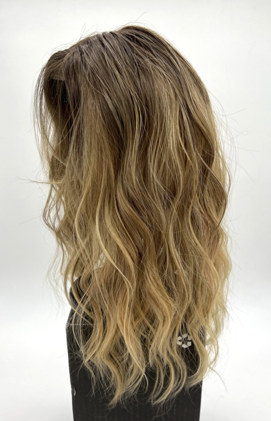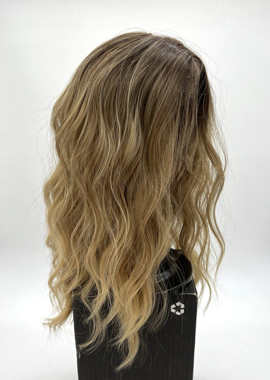 Brown Blonde with Dark Root Long Wavy 16in Women Premium Hair Topper