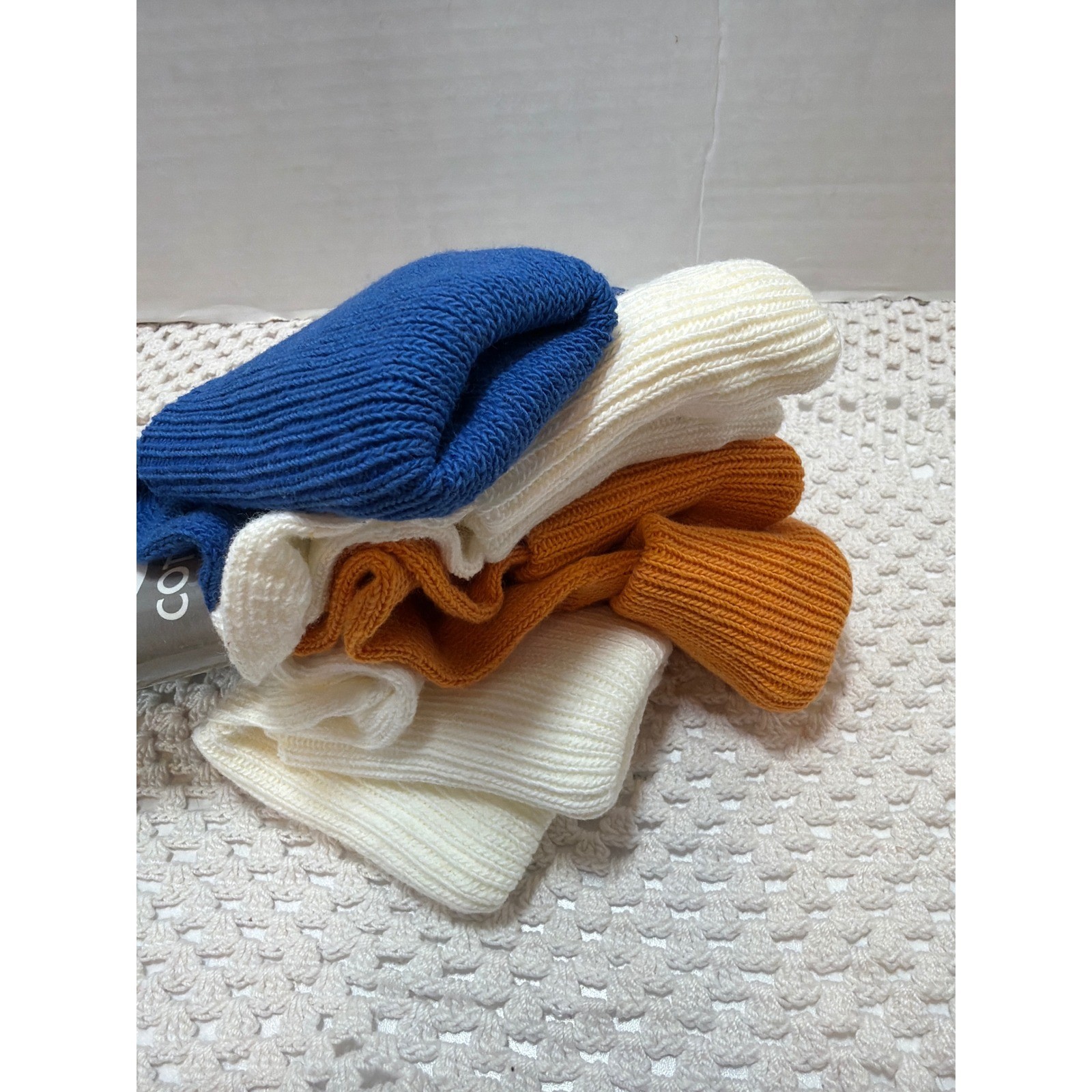 как выглядит VTG 90s Payless ShoeSource Cuff Slouch Socks Women Pack 4 Pair White Blue Gold фото