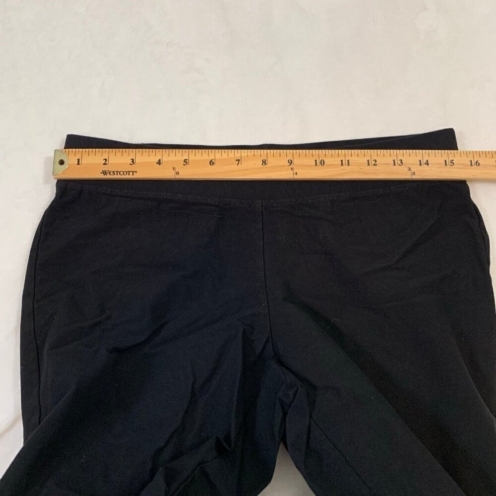 как выглядит Eileen Fisher black straight leg stretch elastic waist pull on ankle dress pants фото