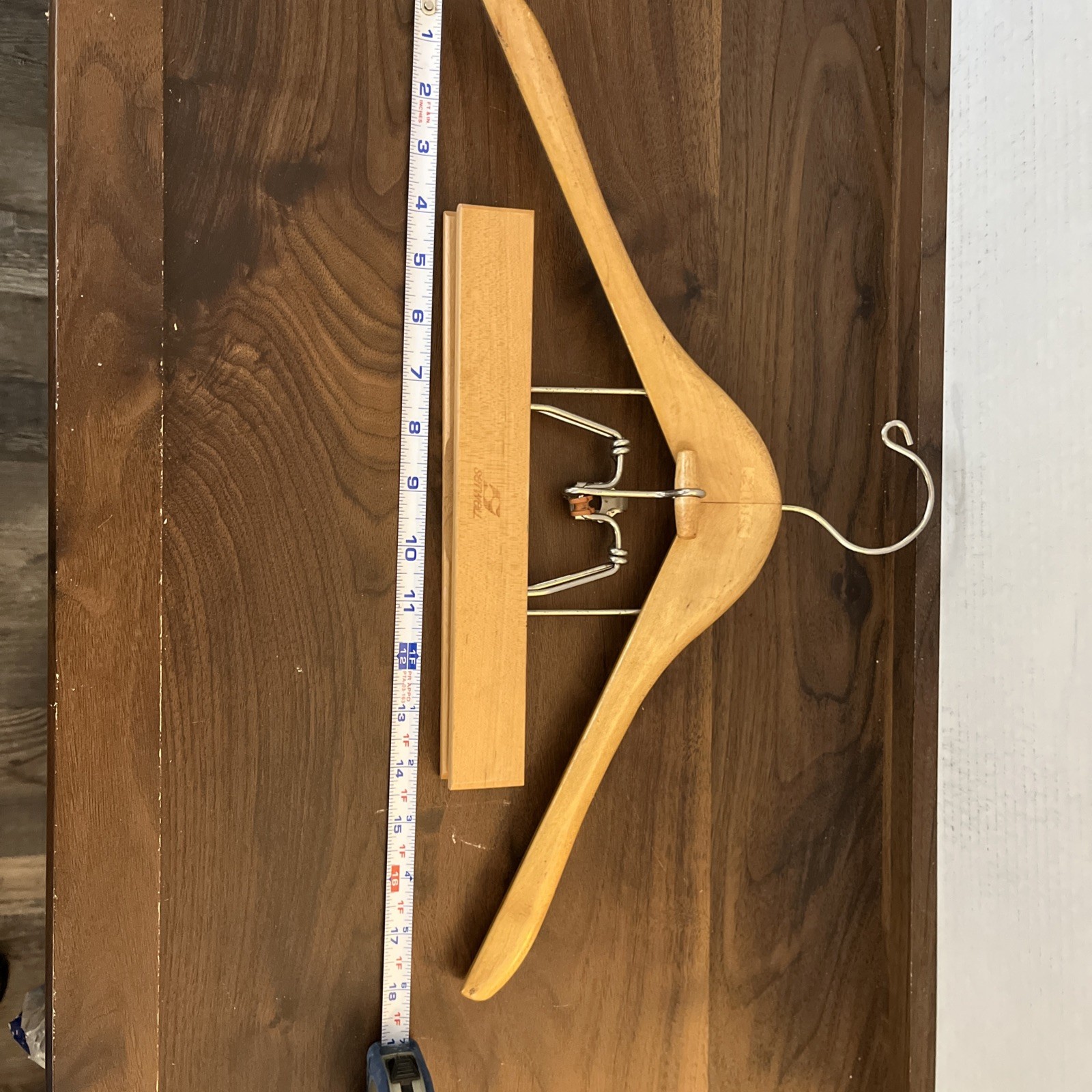 как выглядит VTG SETWELL HEAVEY 18" WOODEN SUIT HANGER WITH METAL CLIPS фото