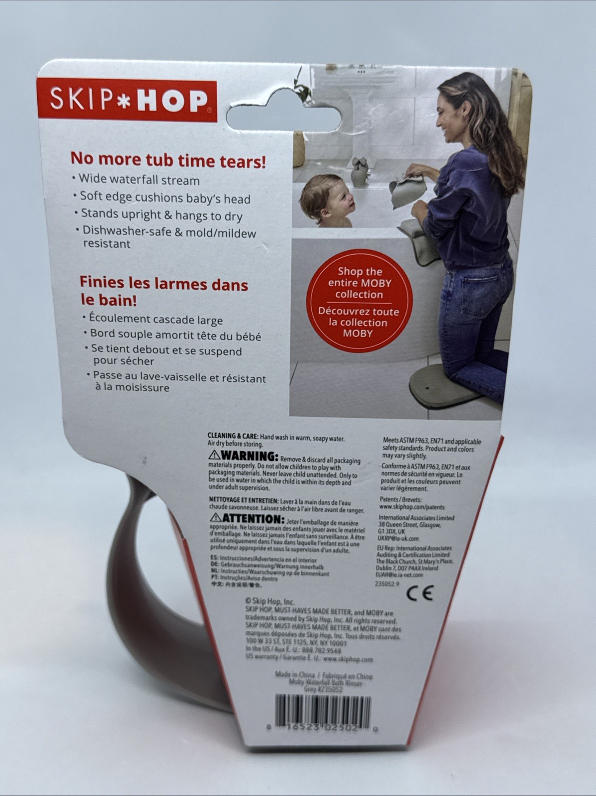 Skip Hop Baby Bath Rinse Cup MOBY Tear-free Waterfall Rinser Grey Age 0