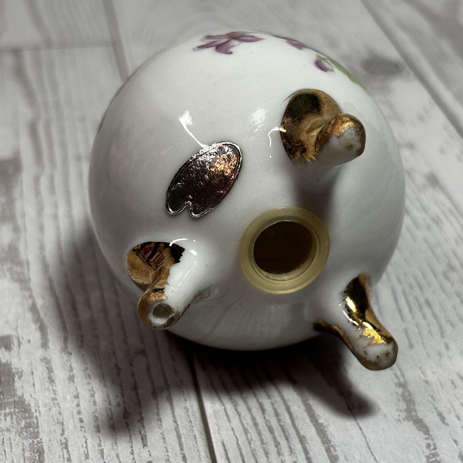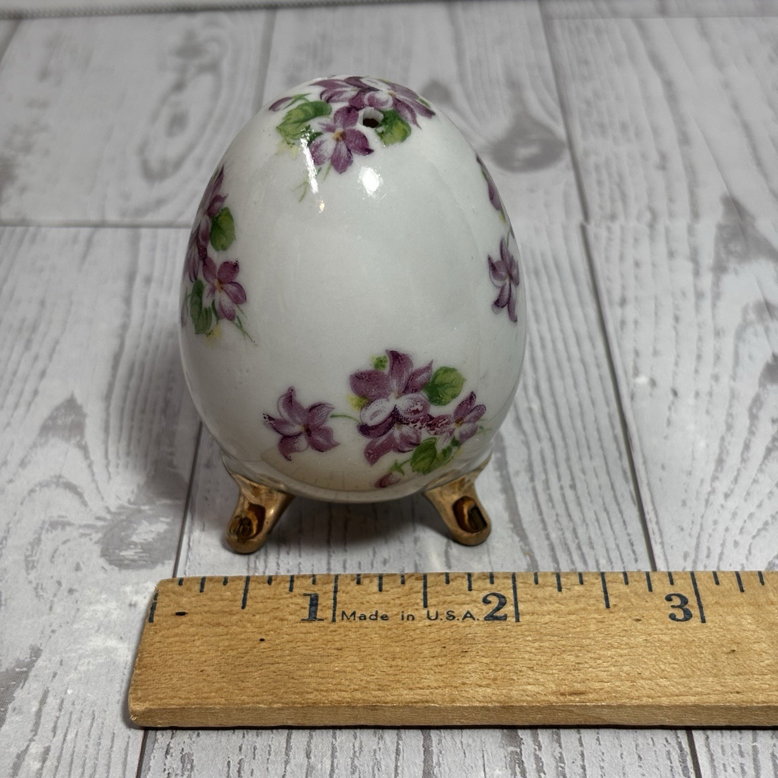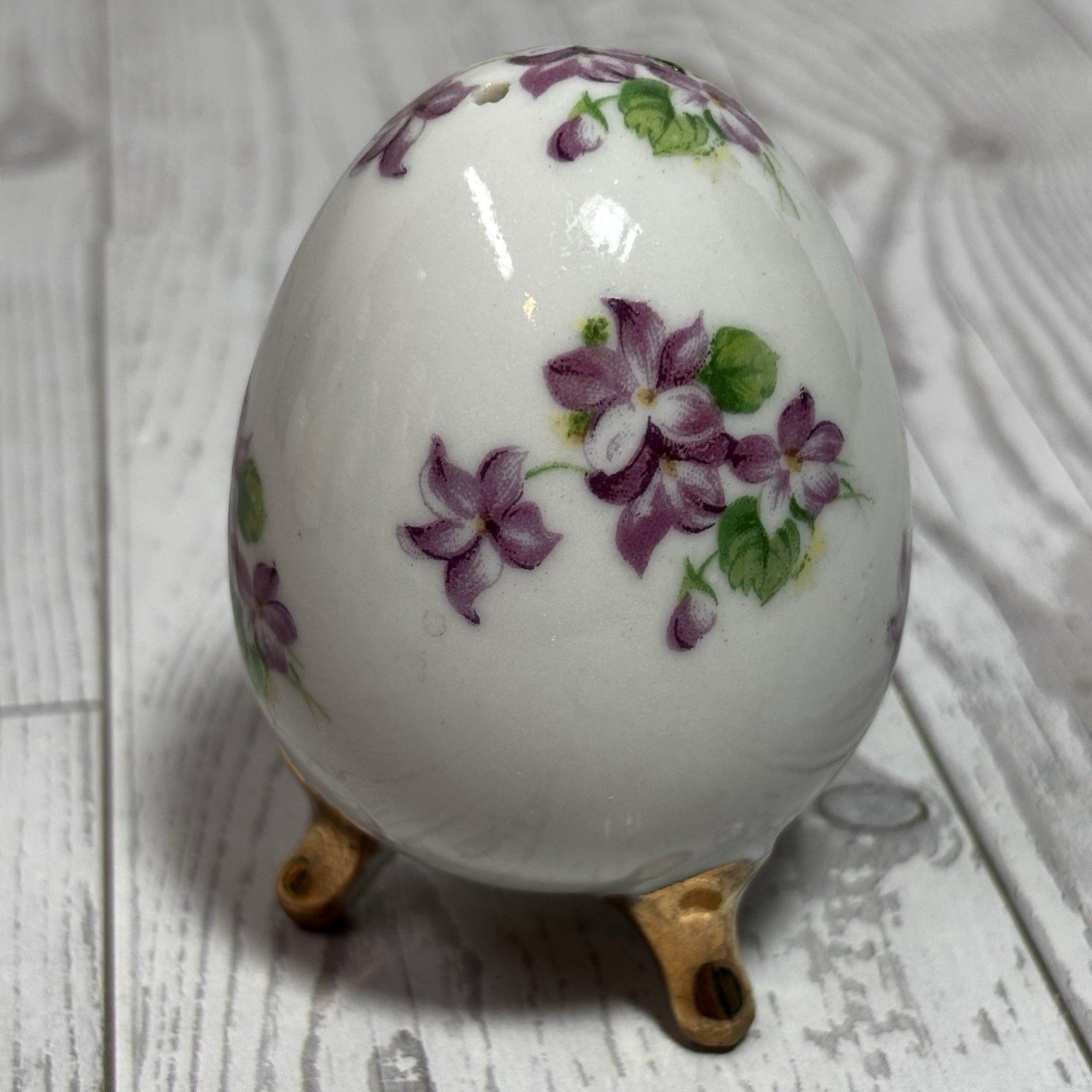 как выглядит Vintage Salt Shaker Egg Footed Violets Flowers Porcelain Lugenes JAPAN фото