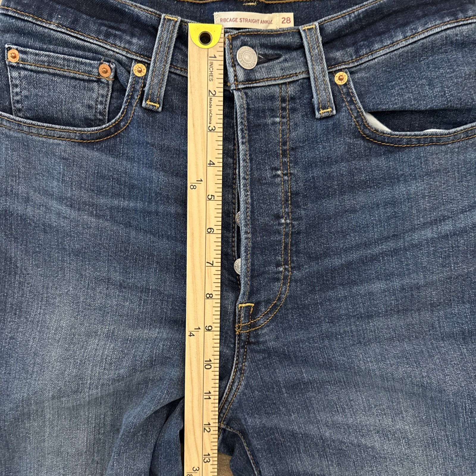 как выглядит Levis Women s Ribcage Straight Ankle Button Fly Jeans Blue Color Size- 28x27 фото