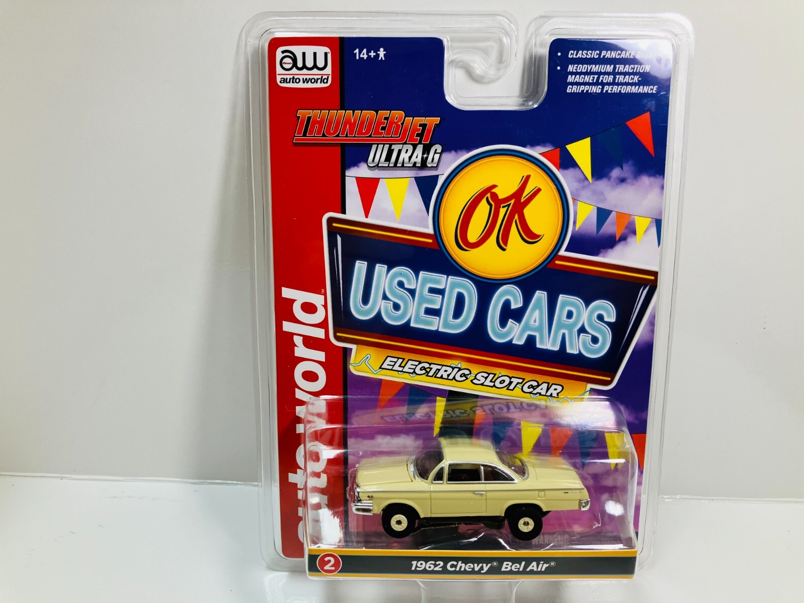 AUTO-WORLD T-JETS Ultra G 1962 CHEVY BEL AIR in Yellow NEW use on AFX AURORA