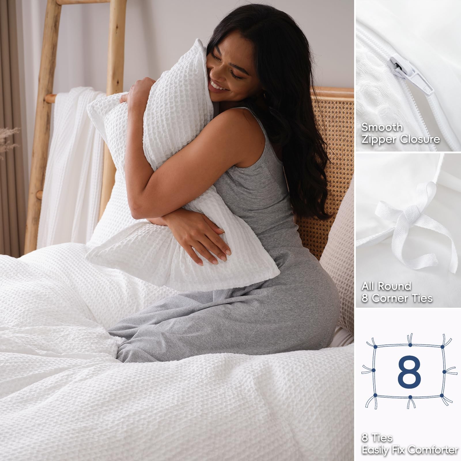 Waffle Weave Duvet Cover Set Queen Size,Soft Breathable 3pcs Comforter Cover ...
