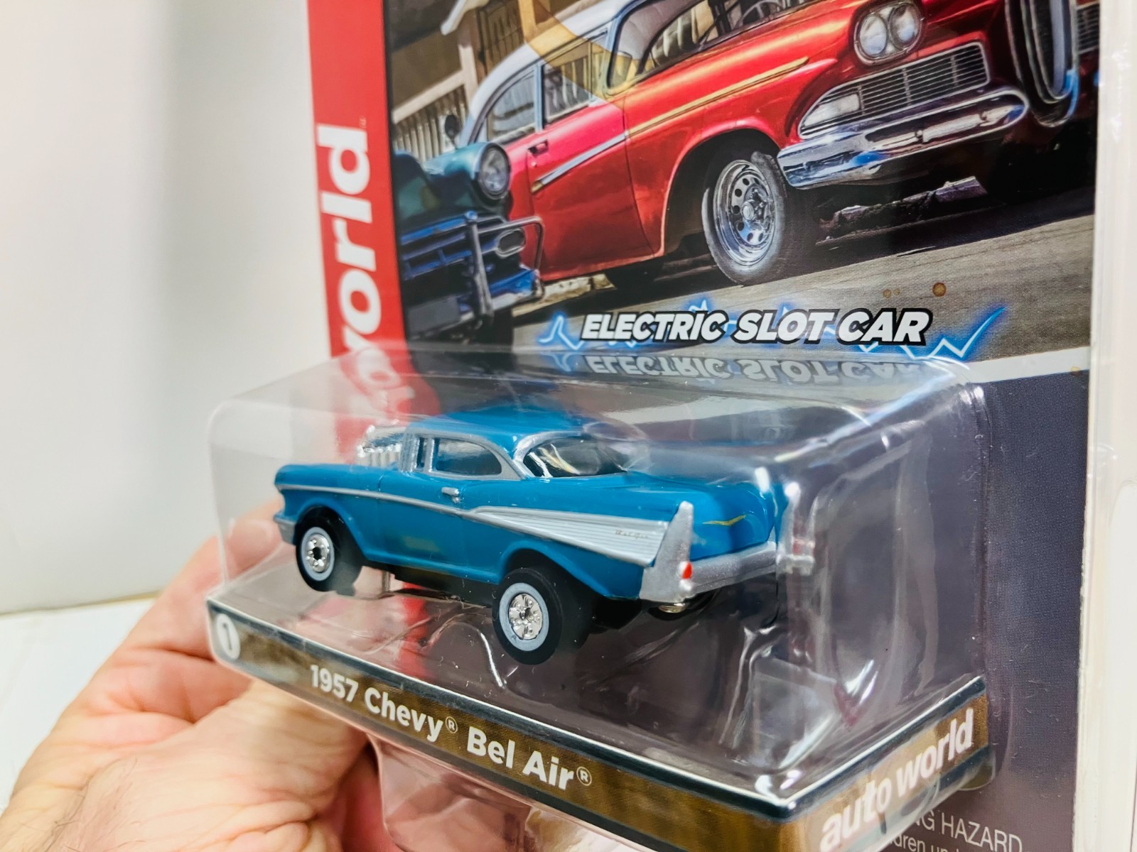 как выглядит AUTO-WORLD THUNDERJETS Ultra G carded 1957 CHEVY BEL AIR use on Aurora AFX фото