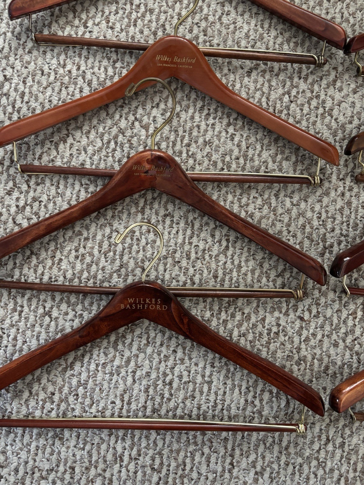 как выглядит LOT OF 10 VINTAGE WILKES BASHFORD WOODEN WISHBONE SUIT HANGERS 17 фото