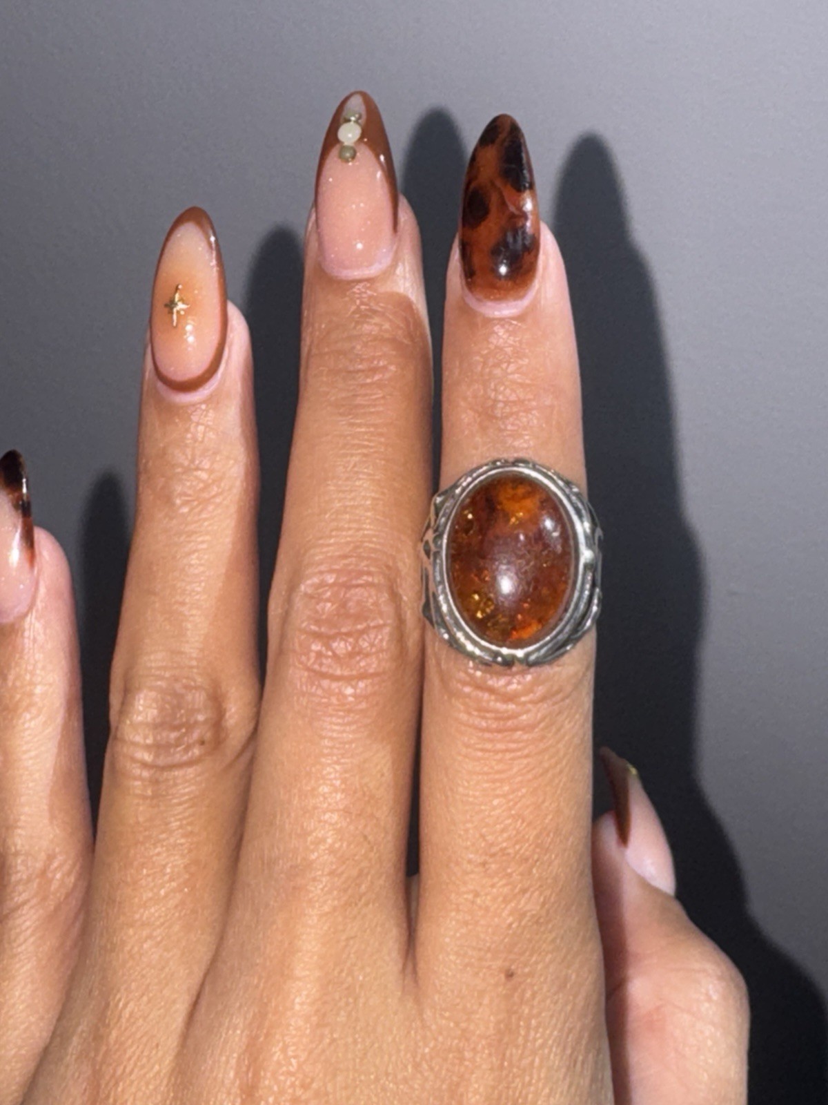 как выглядит Vintage Israel 925 Sterling Silver Baltic Amber Ring Sz 7 фото